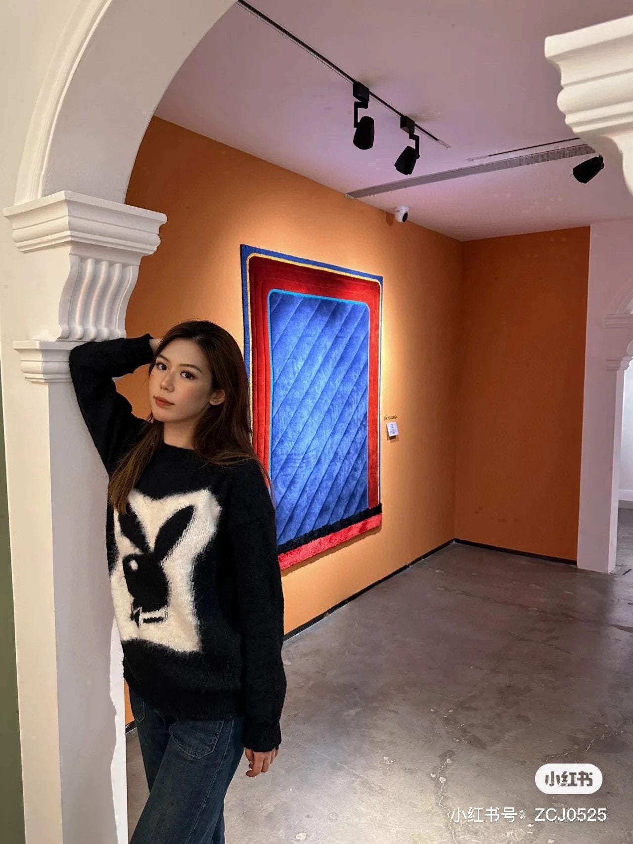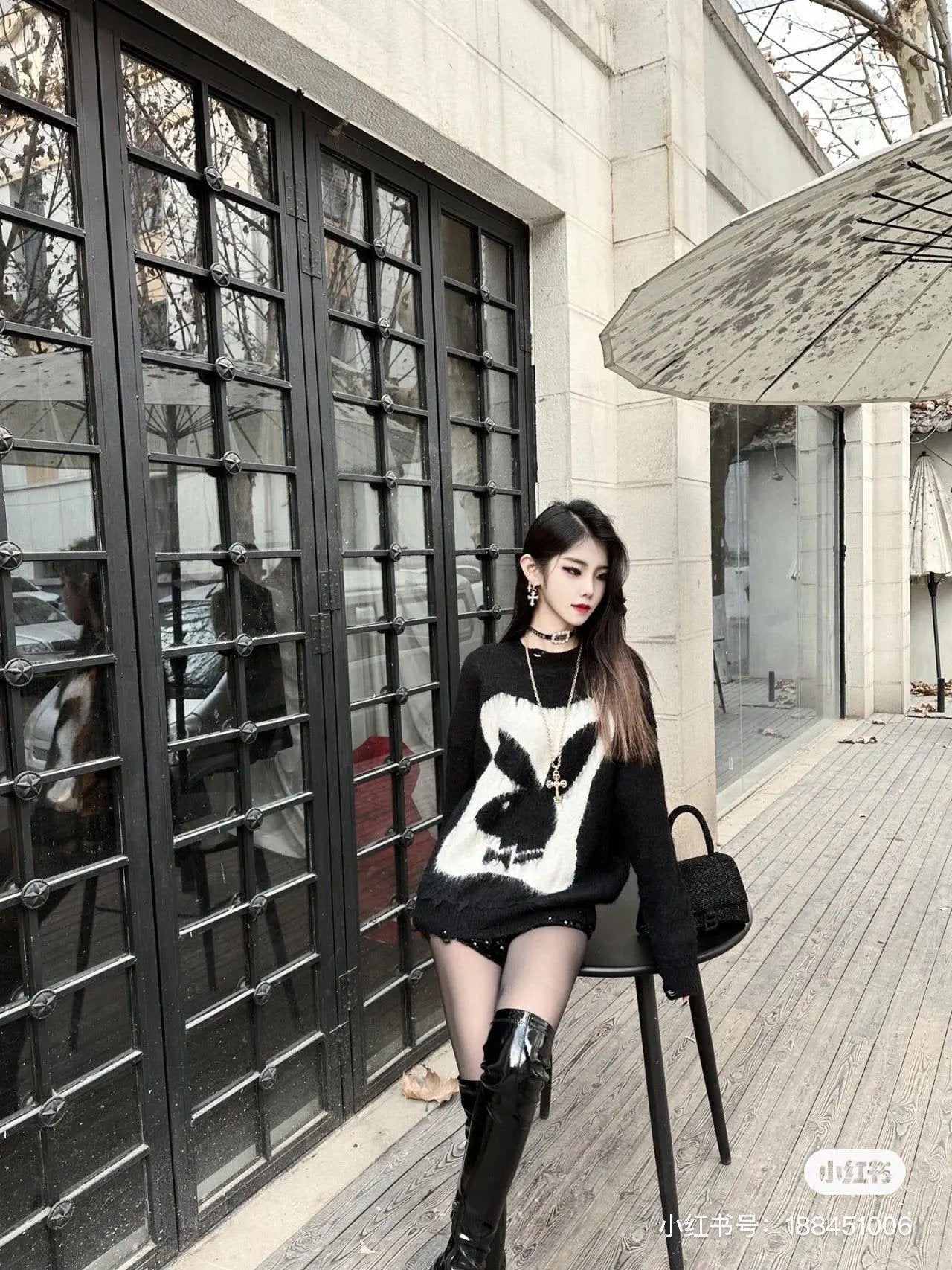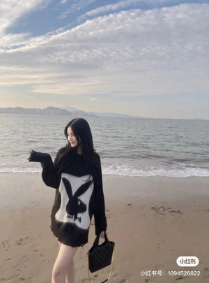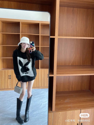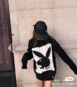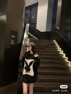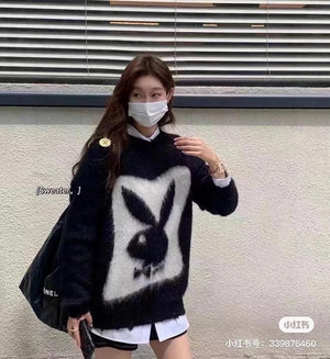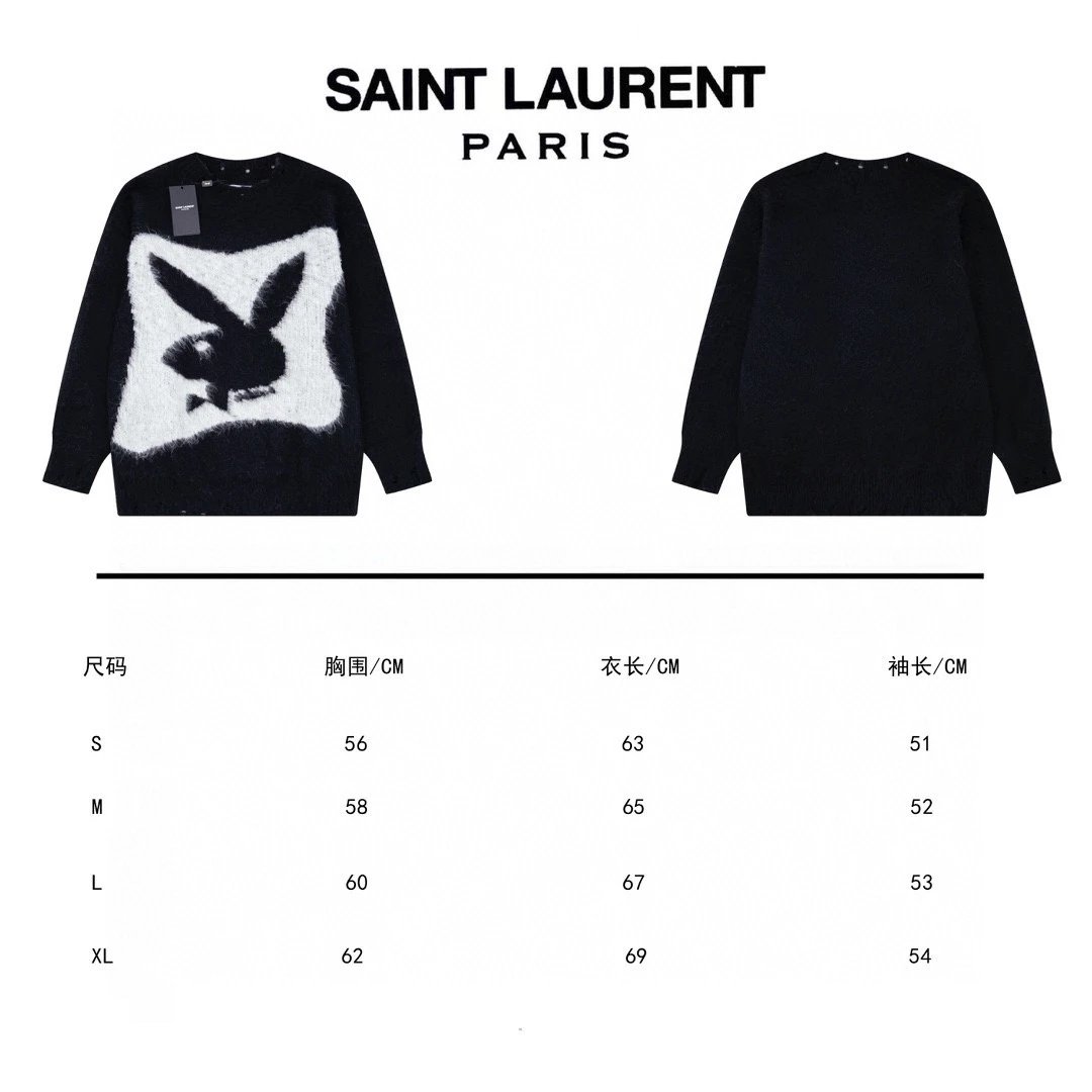 YSL Sweater Collaboration Playboy Bunny Mohair Crewneck Sweater Thickened Lazy Style Unisex Loose Knit Top Coat Versatile Casual Wear