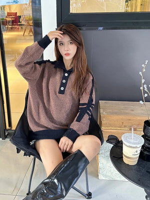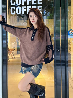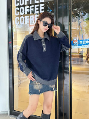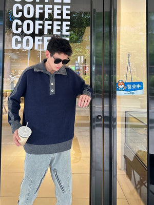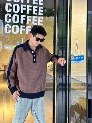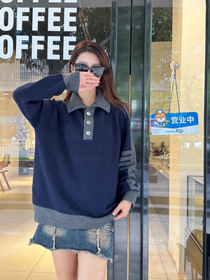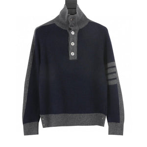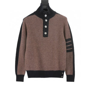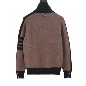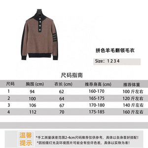 Thom Browne Sweater Color Matching Wool Lapel Sweater for Men and Women