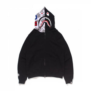 Bape Hoodie Correct Version Japanese Style Fashion Brand Camouflage Shark Head Hooded Sweater Loose Fleece-lined Limited Coat for Men and Women