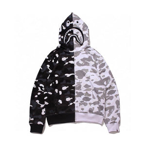 Correct Version Japanese Style Fashion Brand BAPE Camouflage Shark Head Hooded Sweater Loose Fleece-lined Limited Coat Men's and Women's Pre-Purchase Instructions