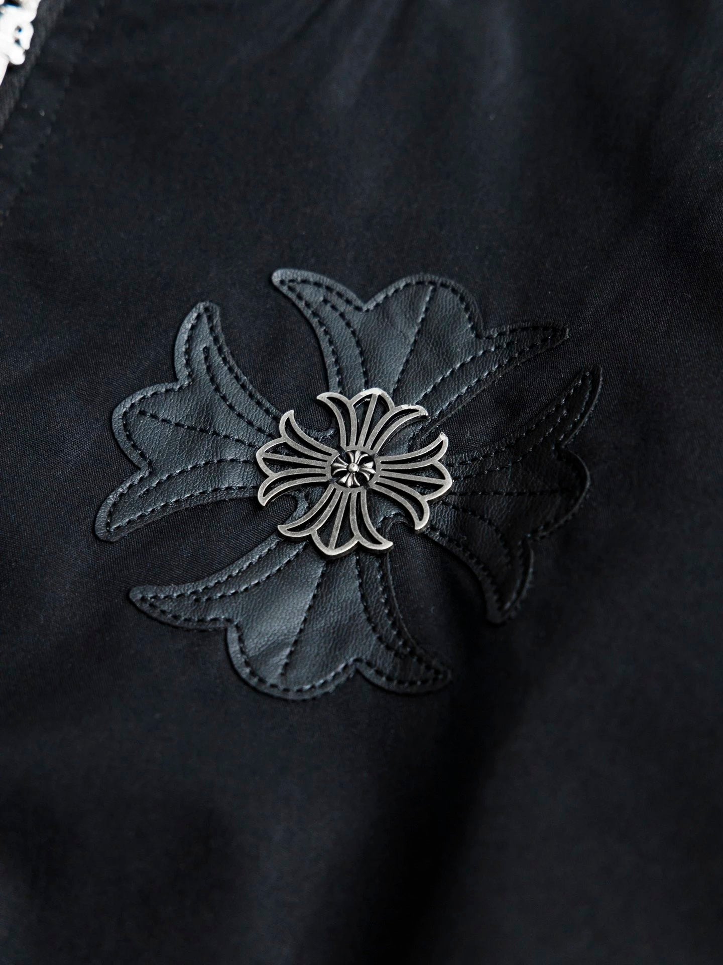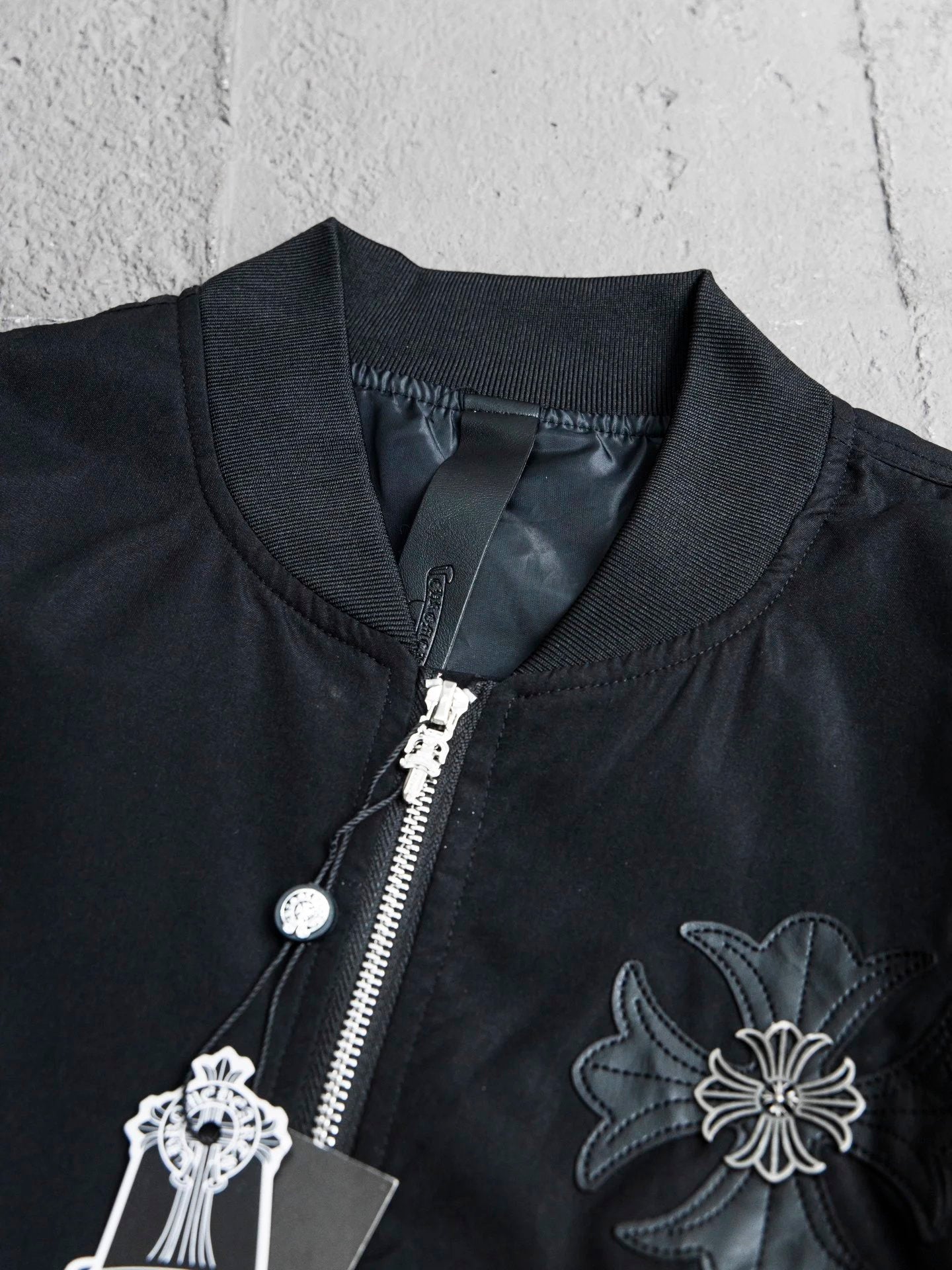 Chrome Hearts Jackets Cross Leather Silver Jewelry Heavy Industry Flight Suit Baseball Jacket Casual Loose Versatile Stand Collar Jacket Sportswear os Unisex Style24ss Autumn and Winter New Products