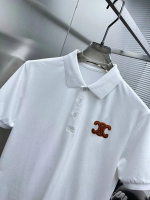 Celine T-shirt Double-breasted C Letters logo Embroidery POLO Short Sleeve Turn-down Collar Shirt Unisex Summer Loose Fit T Business Commuter Short Sleeve Shirt Plus Size T-Shirt