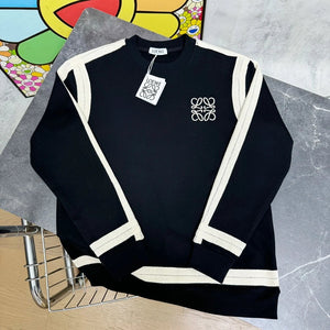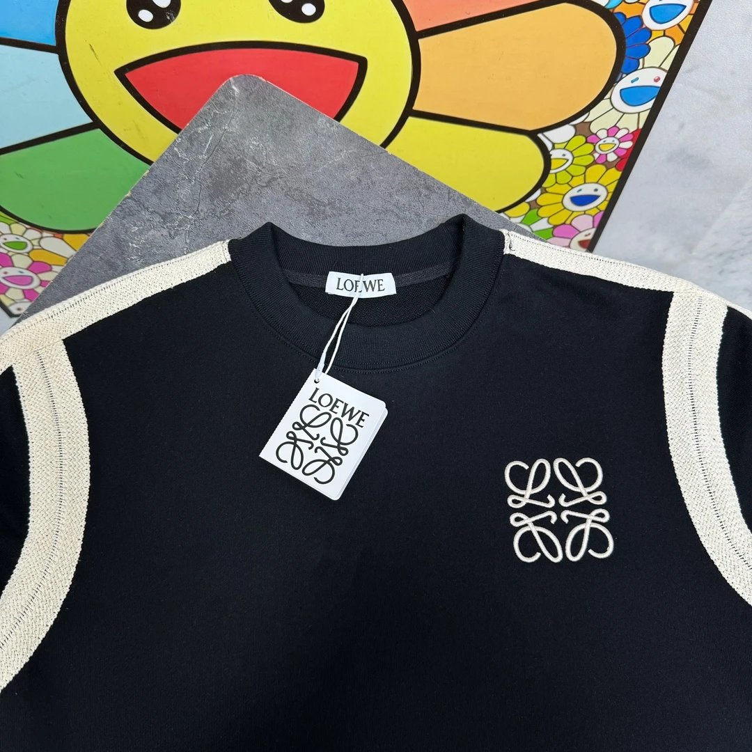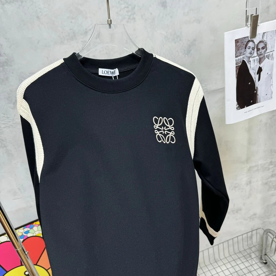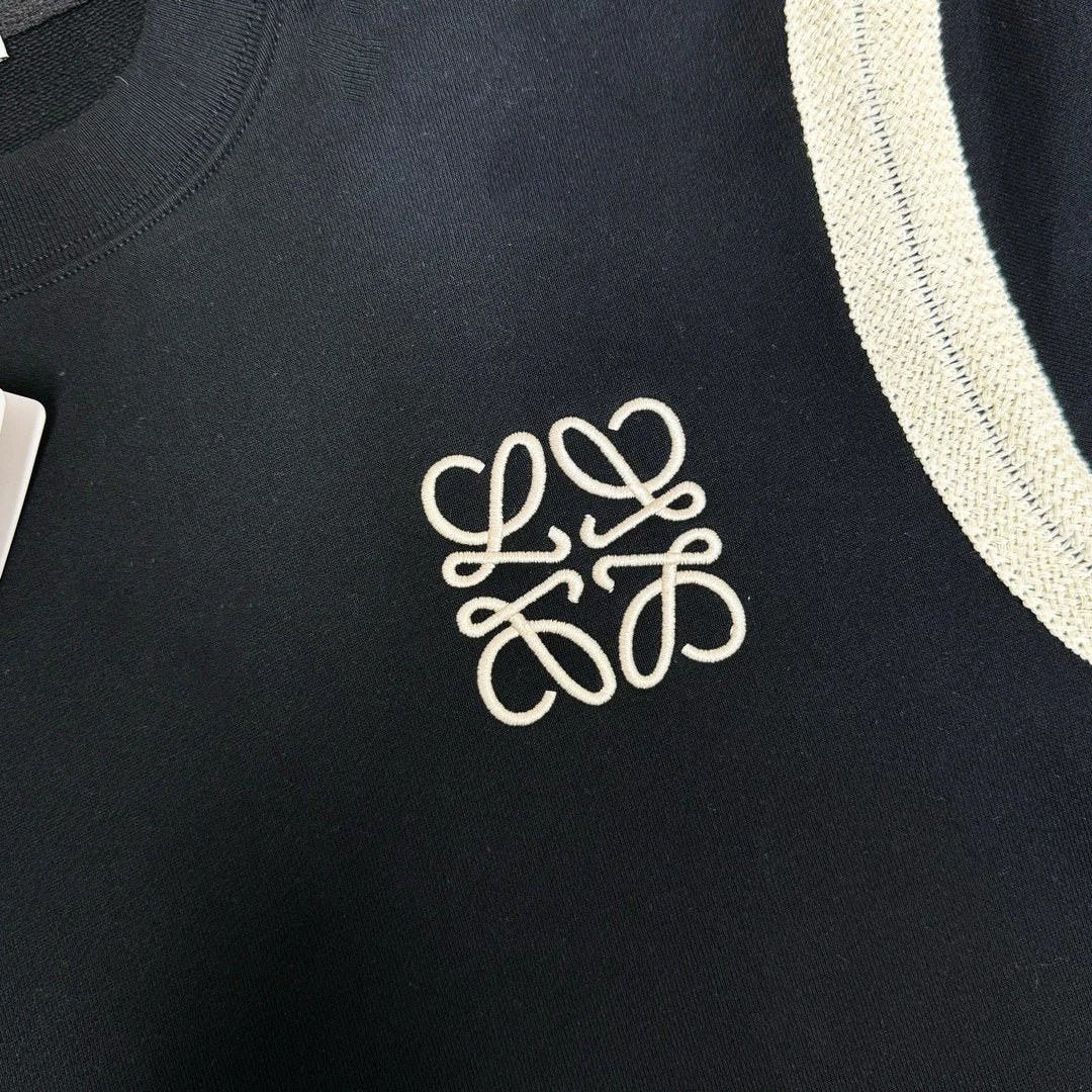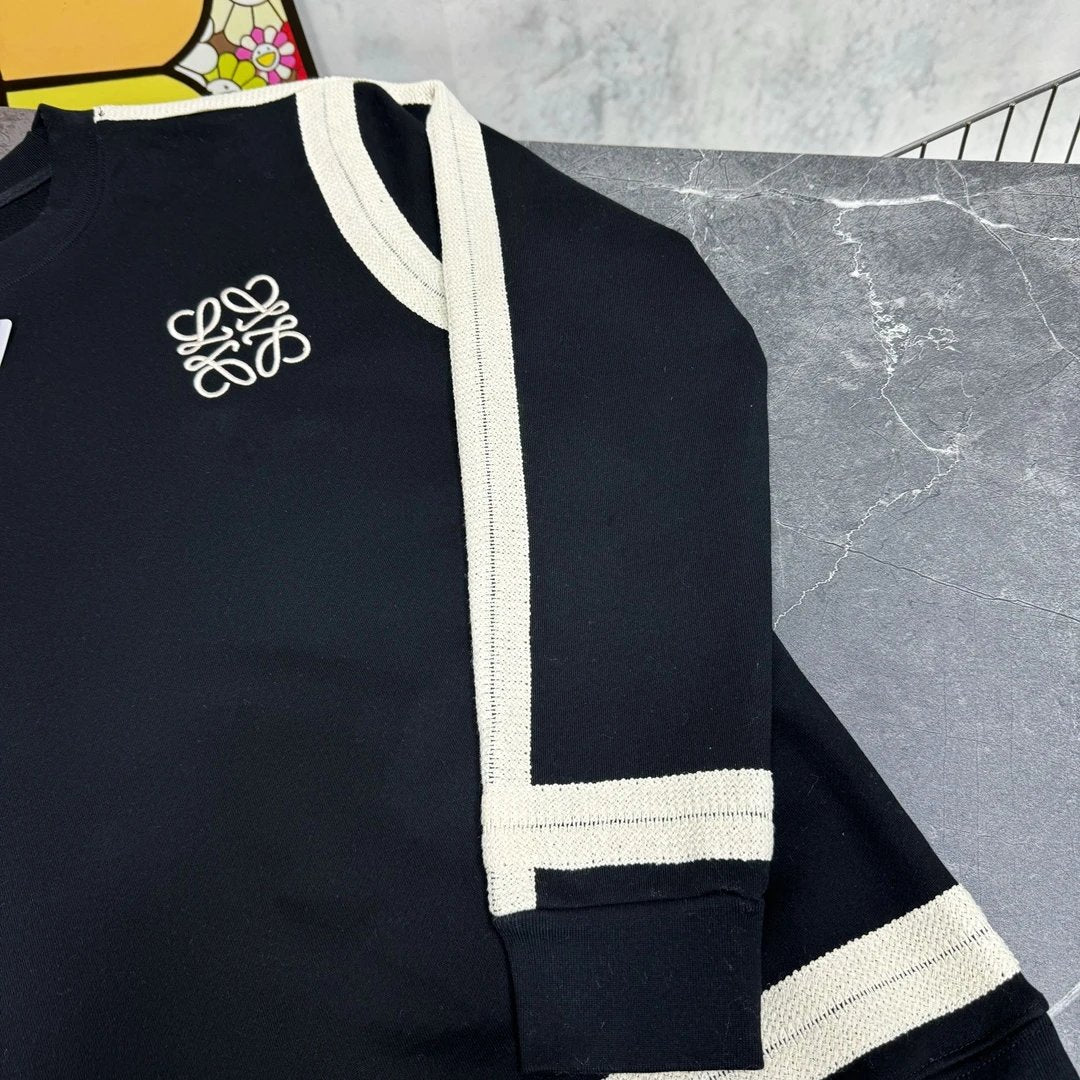 LOEWE Hoodie Embroidered Logo Crewneck Sweatshirt with Edged Ribbon400100% Pure Cotton Terry Loose Fit Versatile Pullover Sweatshirt os Unisex Inner Layer Design24ss Autumn and Winter New Products