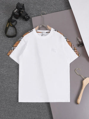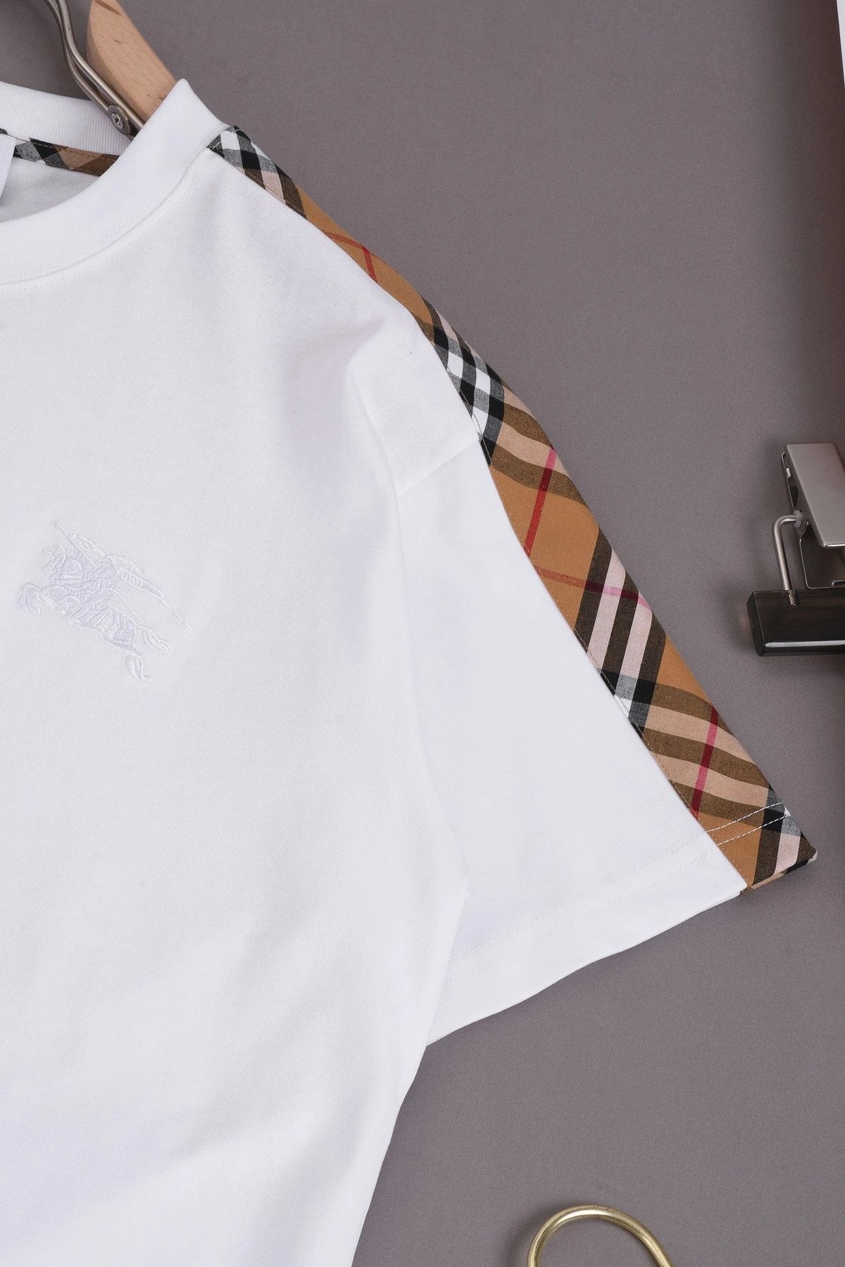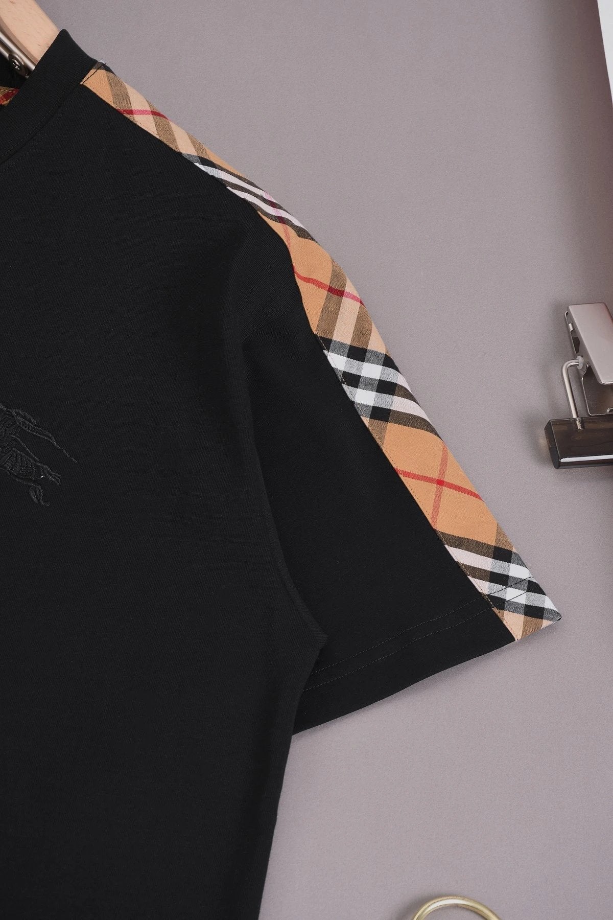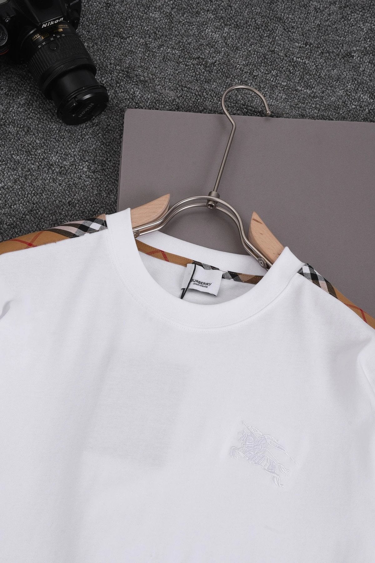 Burberry T-shirt Embroidery Logo Shoulder Patch Plaid Round Neck Short Sleeve25ss New Pure Cotton Unisex Style T Casual T-Shirt Base Layer Shirt OS Loose design