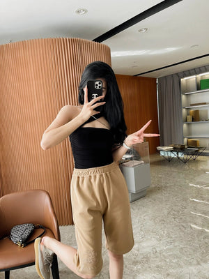 Equestrian Knight Embroidered Logo Cotton Shorts [BUR Chief Creative Director Riccardo Tisci's Limited Series Arrives]: Eye-catching Embroidered Equestrian Knight Logo (EKD), Versatile Unisex Casual Loose Shorts, A Highly Street Style!