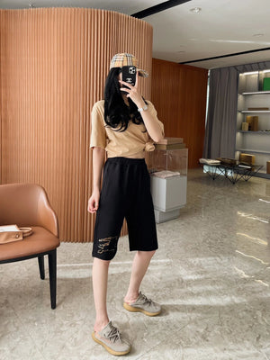 Adhering to BUR's consistent minimalist high-standard style, knee-length shorts are crafted using fleece cotton fabric. Eye-catching decorative equestrian knight emblem (EKD), beautifully outlined with Burberry plaid edges. Compared to regular luxury brands, it perfectly showcases the presence of the BUR brand with high recognition value. Overall, it gives off a simple yet high-standard and basic vibe, and it's designed with a loose fit for a stronger fashion and high-street casual style! It's made with high-thread-count fabric that feels substantial, with clear visible texture from the dense material. Softness and comfort are basic features, while breathability and warmth retention are surprises! It's not stuffy and also windproof. The real cost investment in sweatshirt fabric is visible to you and can be felt on your body! The overall touch is extremely comfortable, and the skin-friendly effect is excellent. The OV style also has a perfect matching effect; it perfectly suits various outfit occasions' needs. Extremely extraordinary, the class and charm are exceptionally outstanding and eye-catching, highlighting the brand's standards and your pursuit of fashion!!