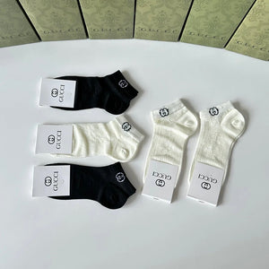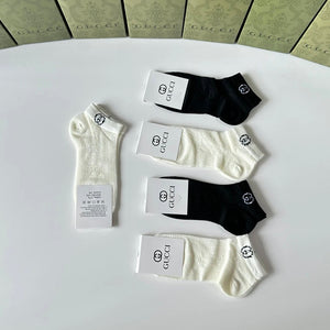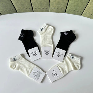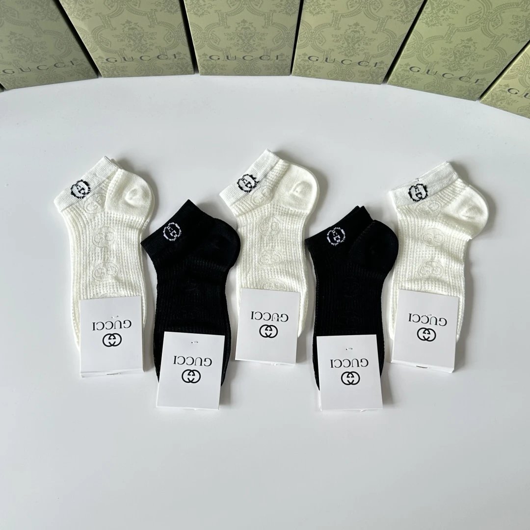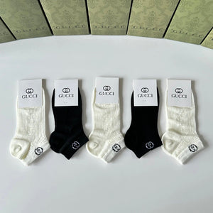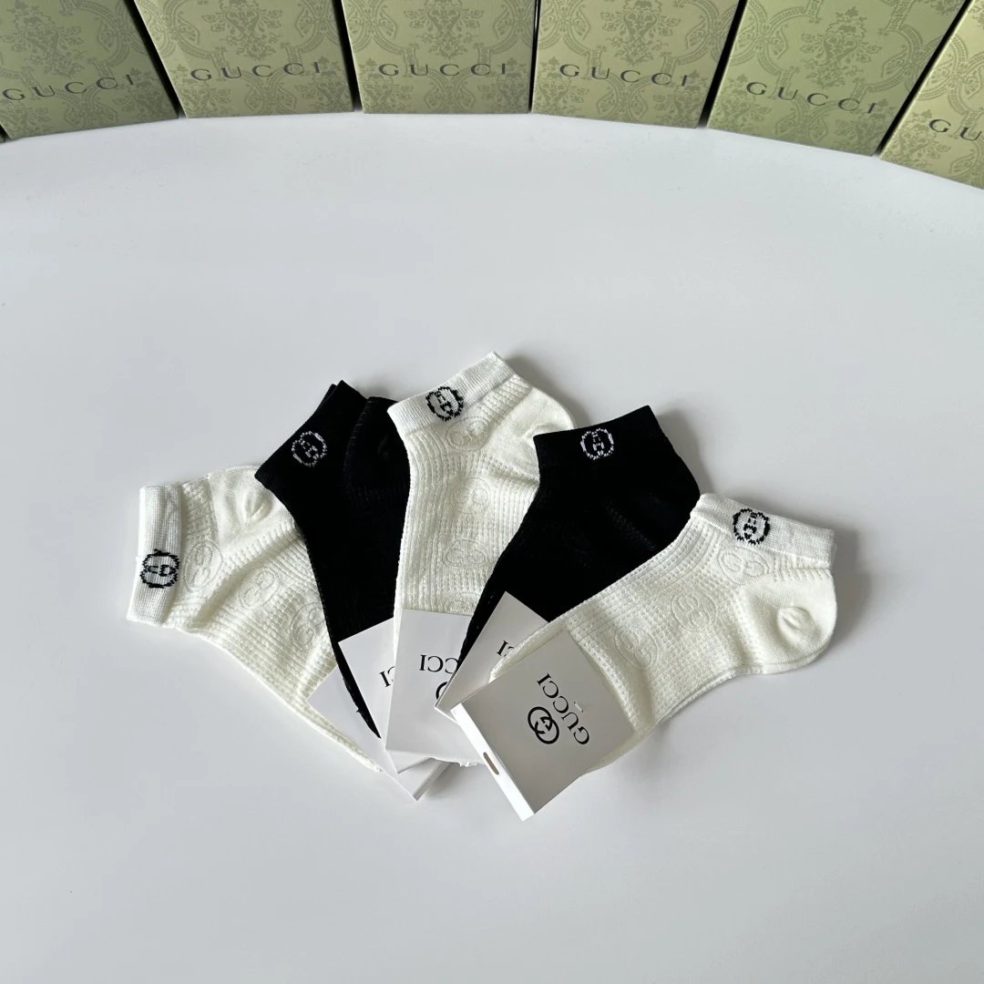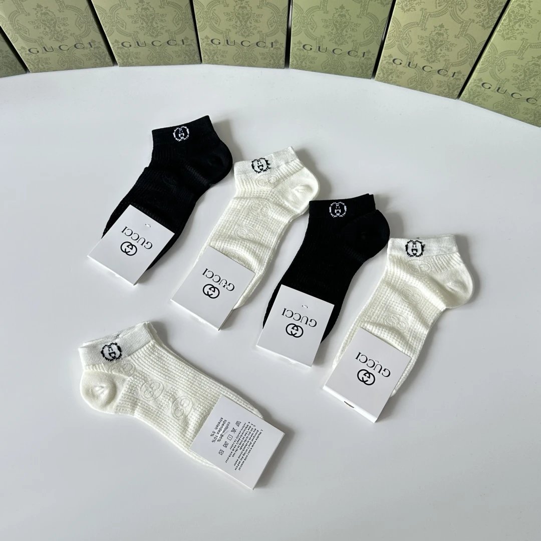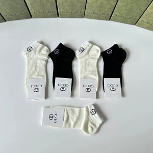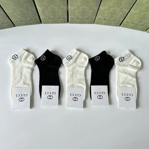Gucci Sock 【Five Pairs Per Box】Classic Letters logo Pure Cotton Mid-Calf Short Tube Socks Breathable Fashionable25ss New Short Cotton Socks Spring Summer Autumn Thin Business Deodorant Sweat-Absorbing Sports Casual Versatile