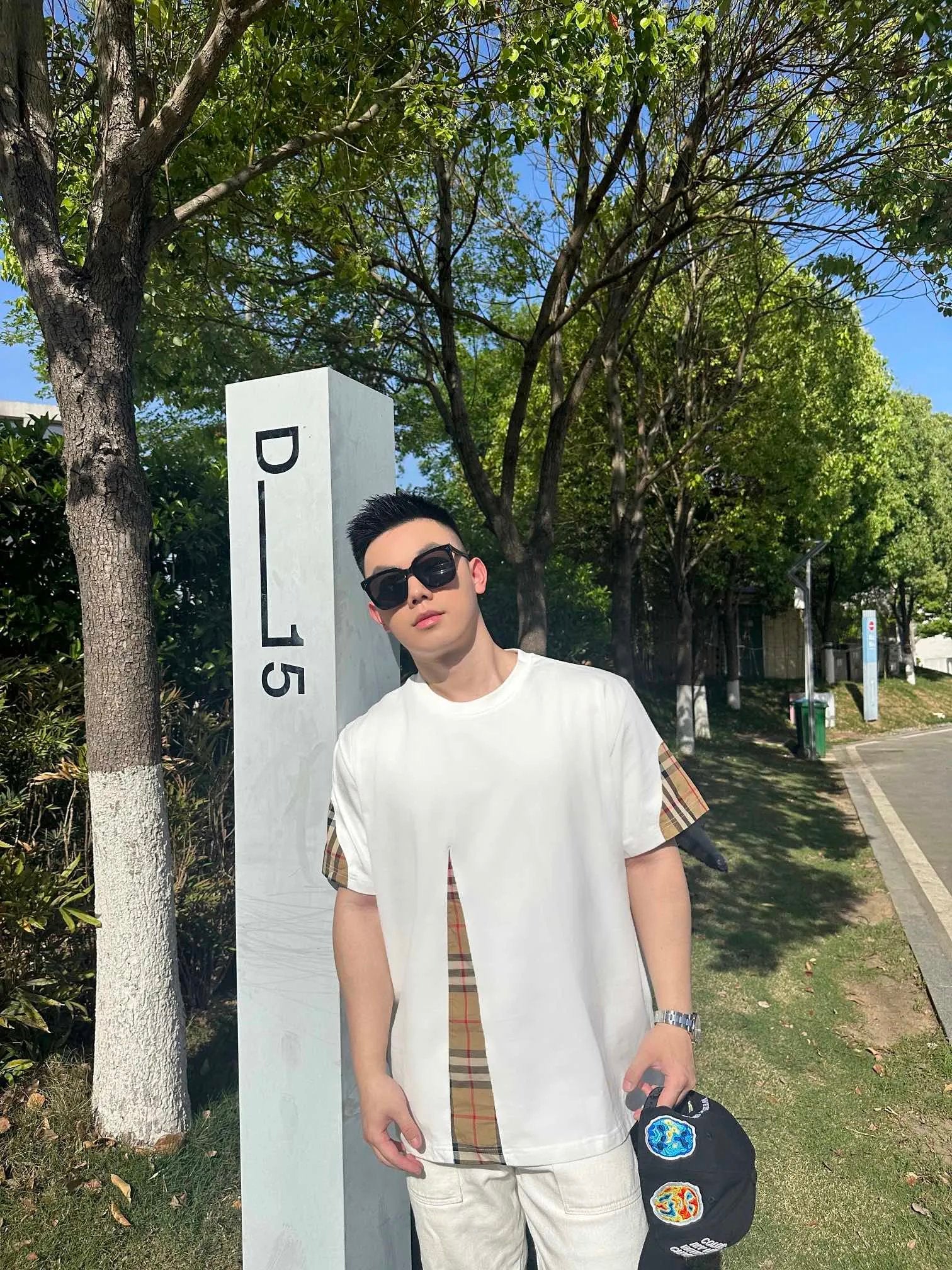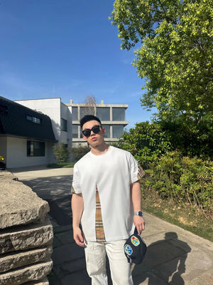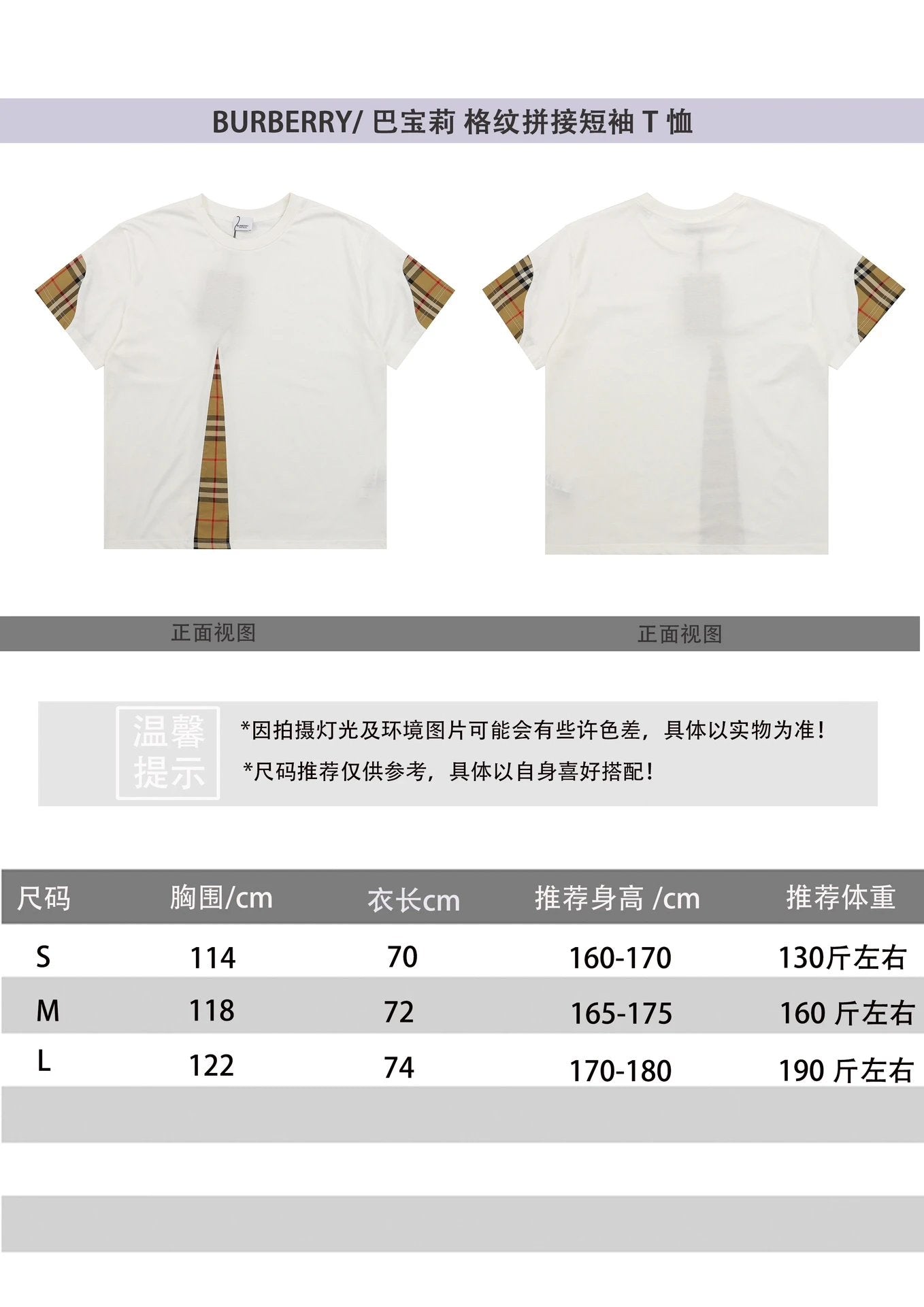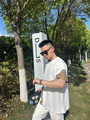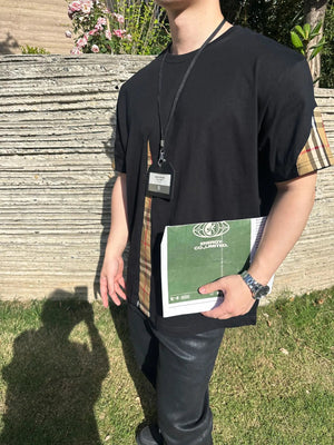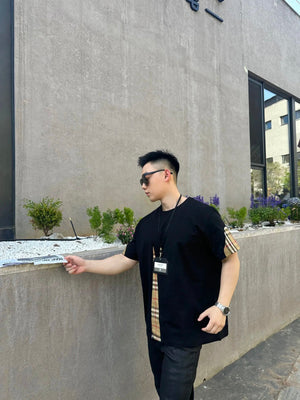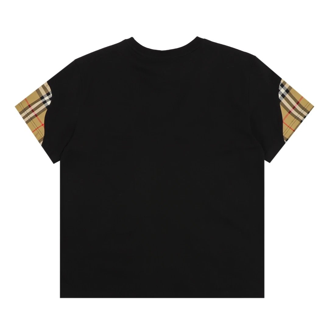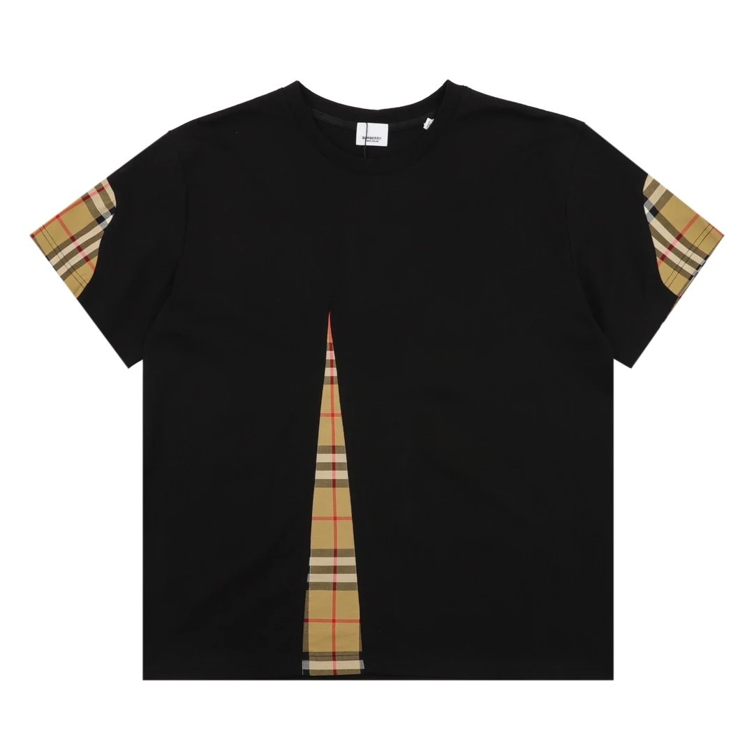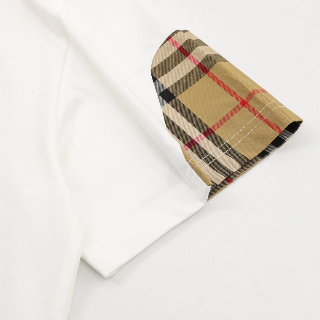 Burberry T-shirt Front Plaid Stitching logo round Neck Short Sleeve25ss New Pure Cotton Unisex Style T T-shirt OS Loose Fit Base Shirt Top Half Sleeve T-Shirt
