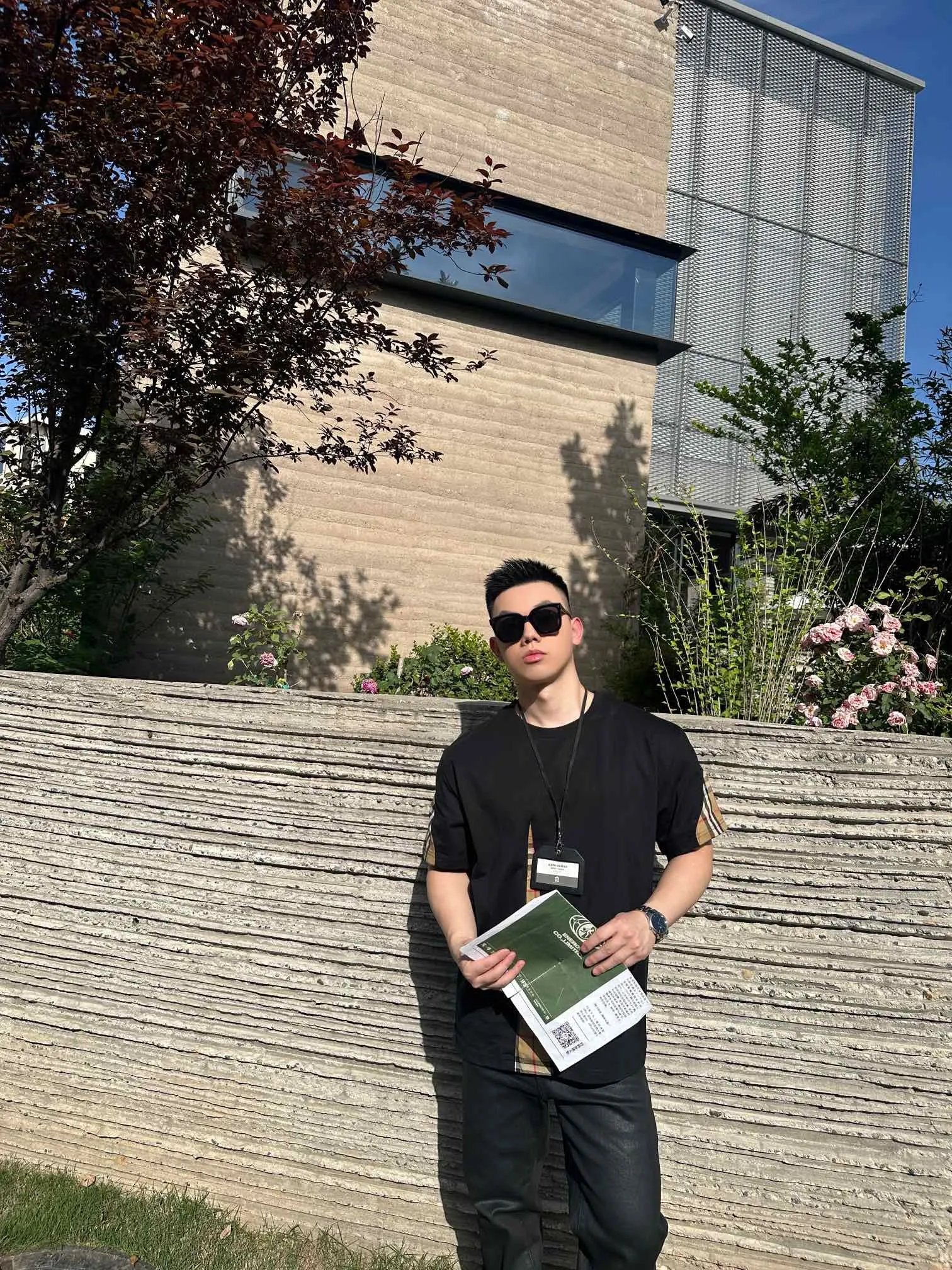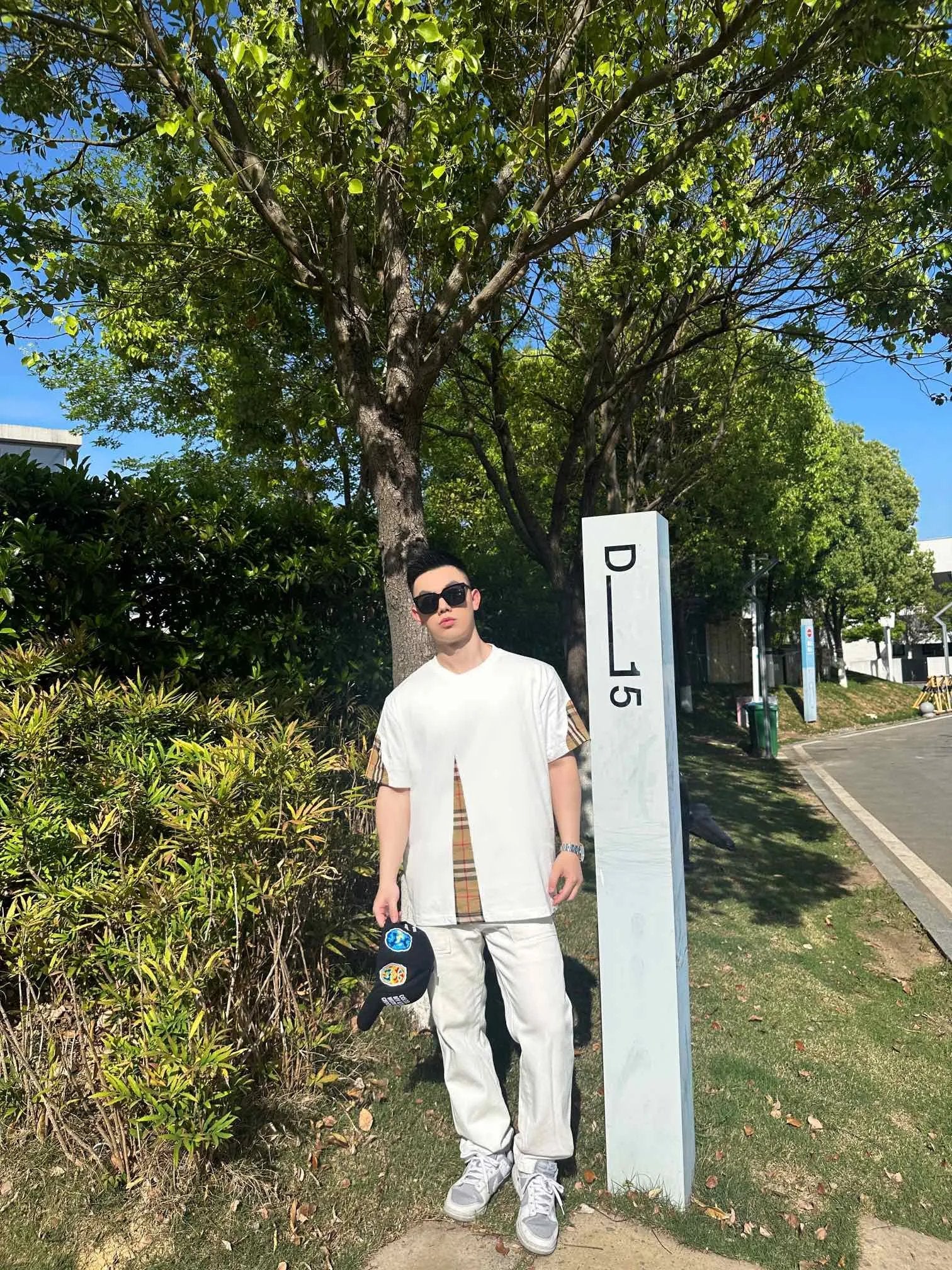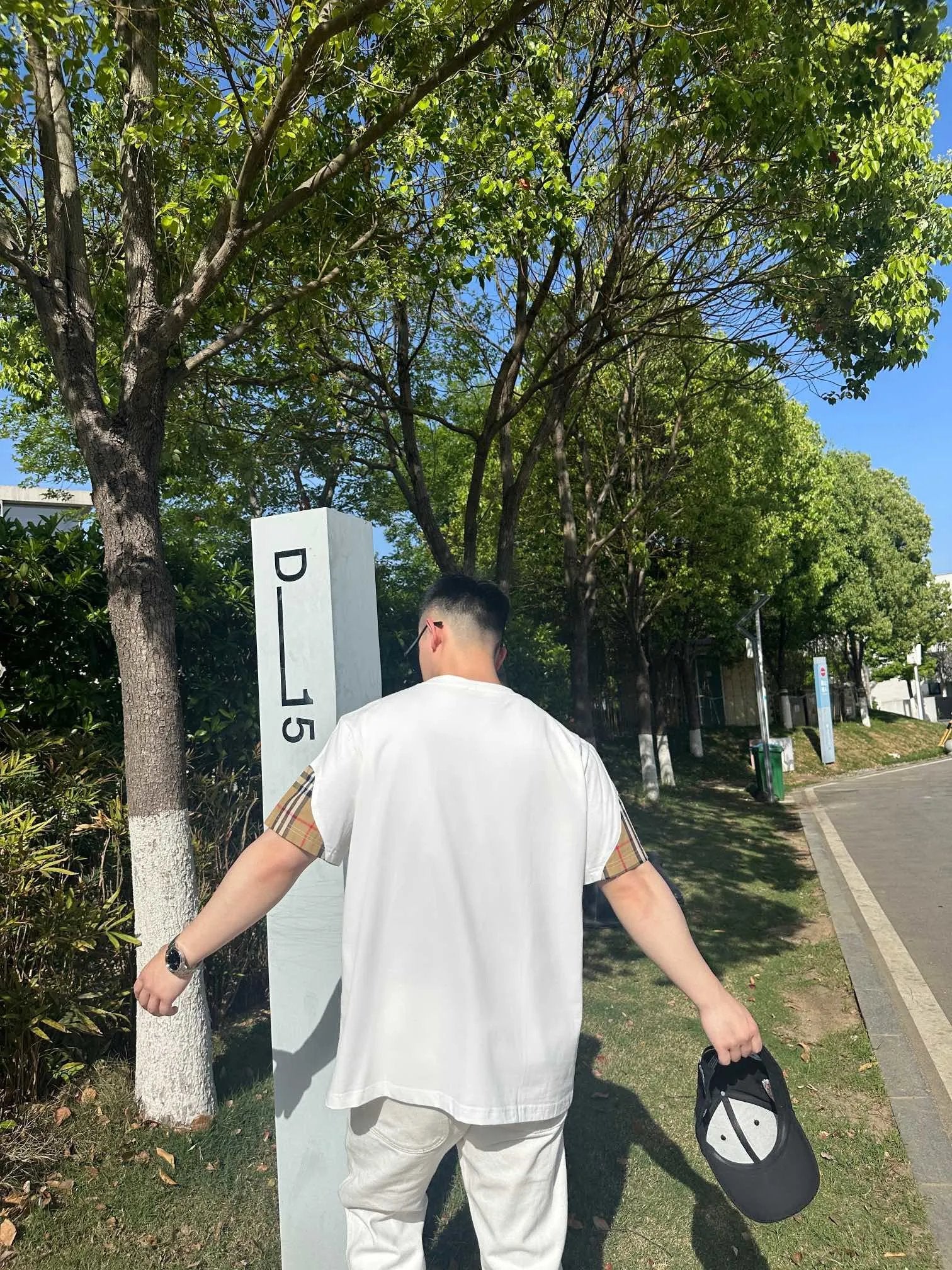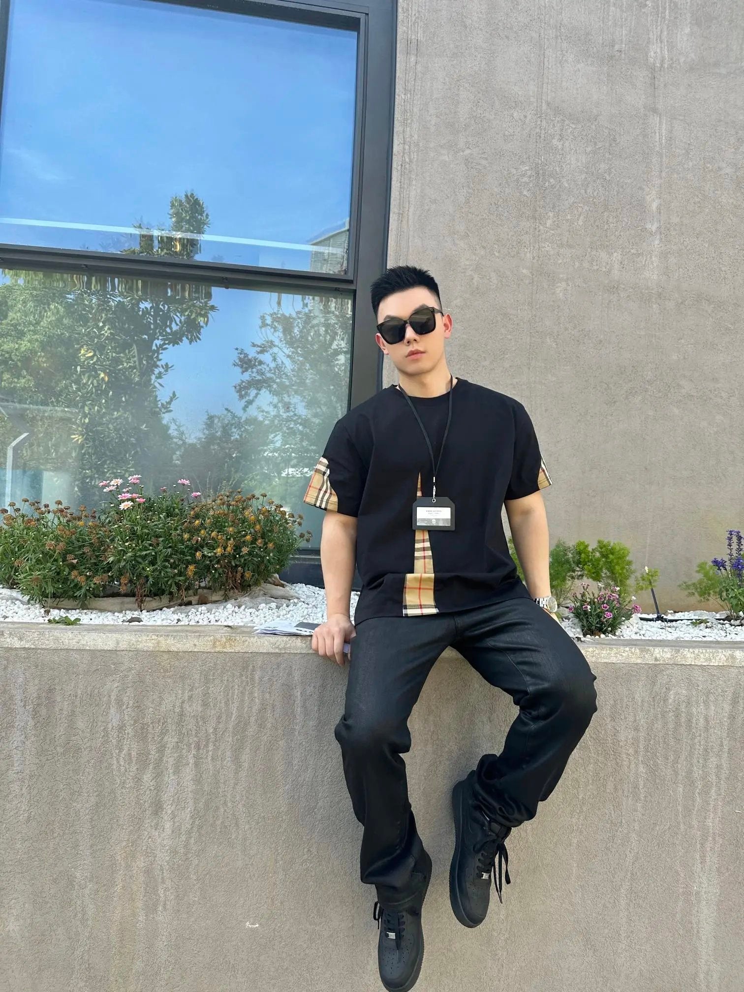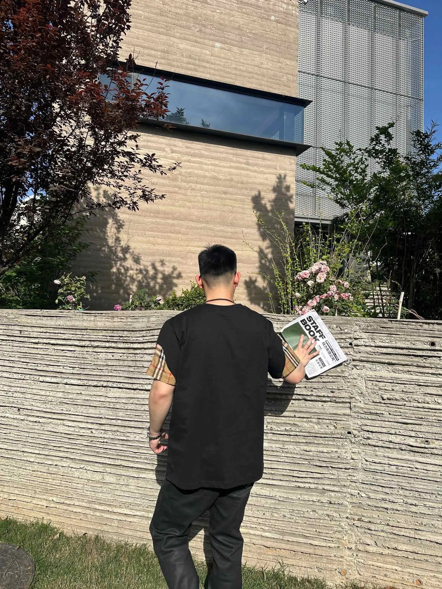 Burberry T-shirt Front Plaid Stitching logo round Neck Short Sleeve25ss New Pure Cotton Unisex Style T T-shirt OS Loose Fit Base Shirt Top Half Sleeve T-Shirt