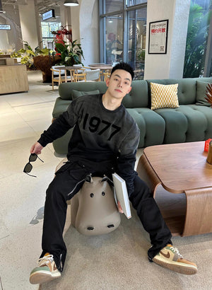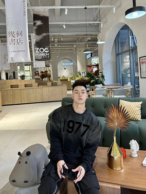 ESSENTIALS Hoodie Gradient Washed Flocking1977round Neck Sweater for Men and Women