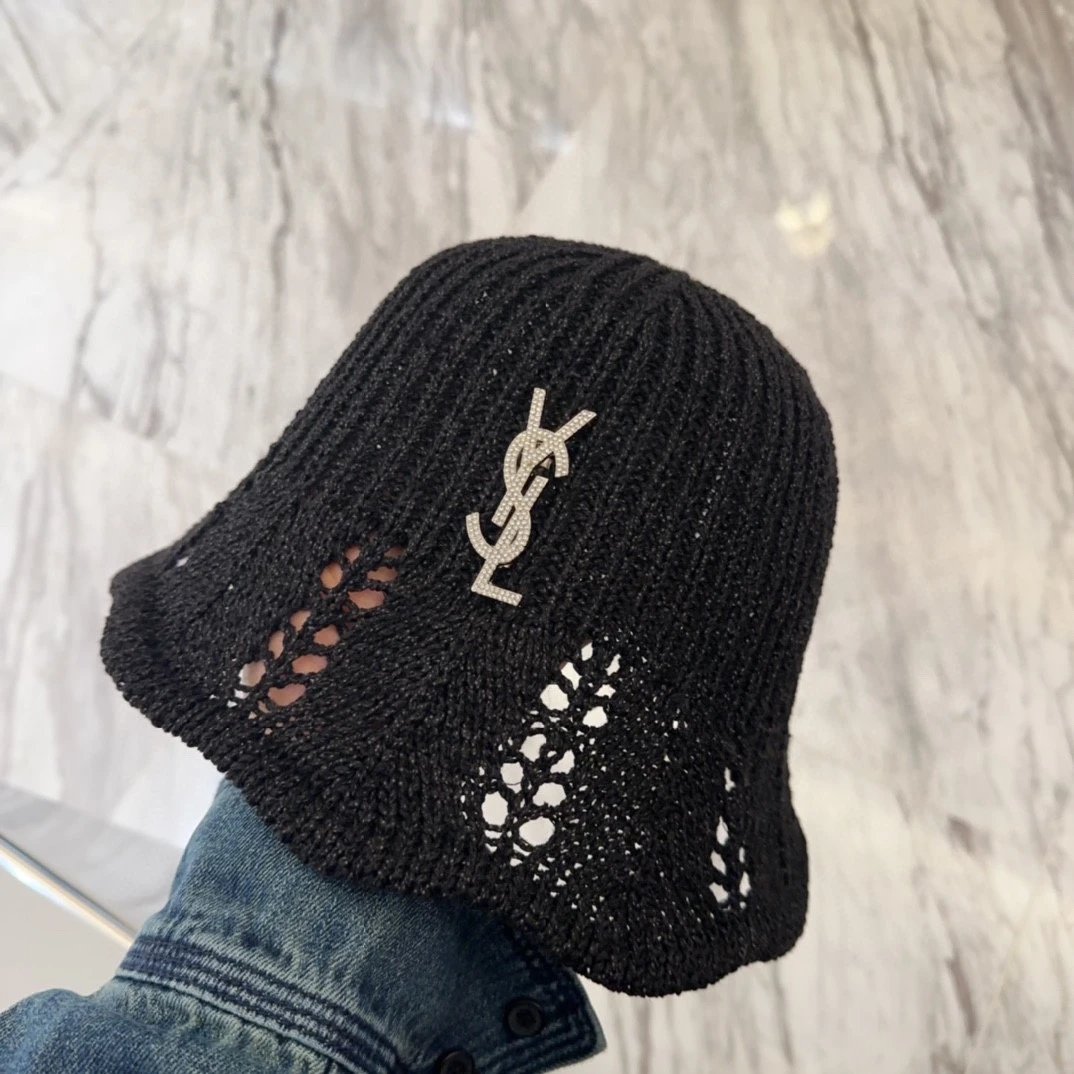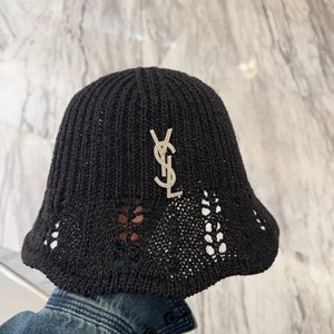 Top Version YSL Letter Print Logo Fisherman Hat Casual Sun Protection Plain Face Covering Sunshade Outdoor UV Protection Versatile Flat Top Bucket Hat