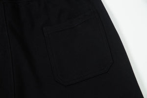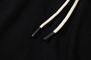 Elastic Waistband Black and White Drawstring Design Custom Drawstring Pockets with Slant Insert Pockets on Both Sides and a Small Pocket at the Back
