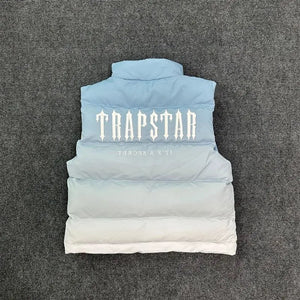Trapstar Down Jackets Vests Light Blue Gradient Vest Men's and Women's Same European and American Fashion Brand Sleeveless Stand Collar Jacket Casual Wear