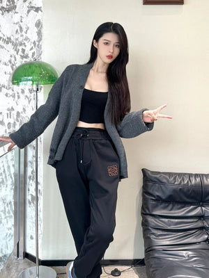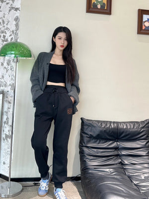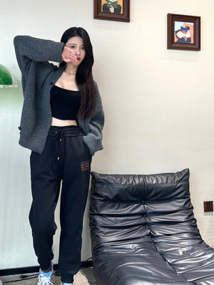 LOEWE Sweatpants Logo and1854Leather Embroidered Pocket Fleece-lined Trousers for Men and Women