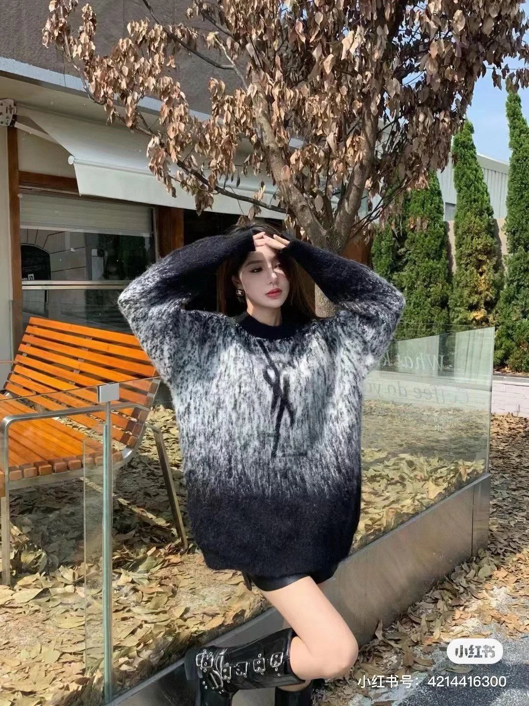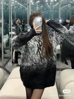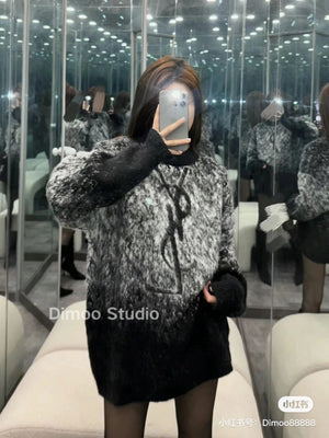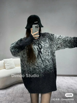 YSL Sweater Mohair Starry Sky Gradient Jacquard Sweater Poplar Forest Casual Loose Pullover Round Neck Thickened Warm Knitwear os Unisex Inner Layer Sweater Top24ss Autumn and Winter New Products