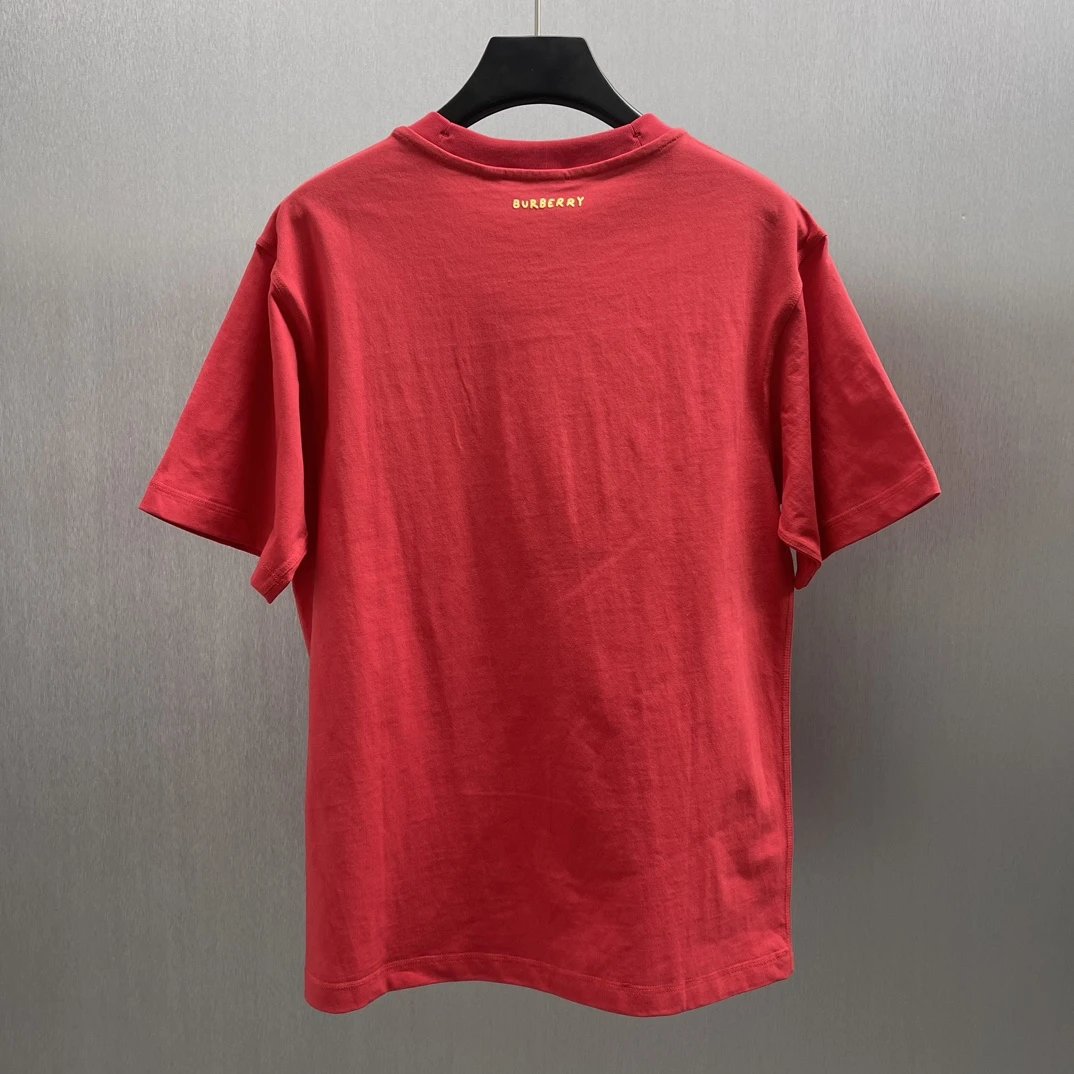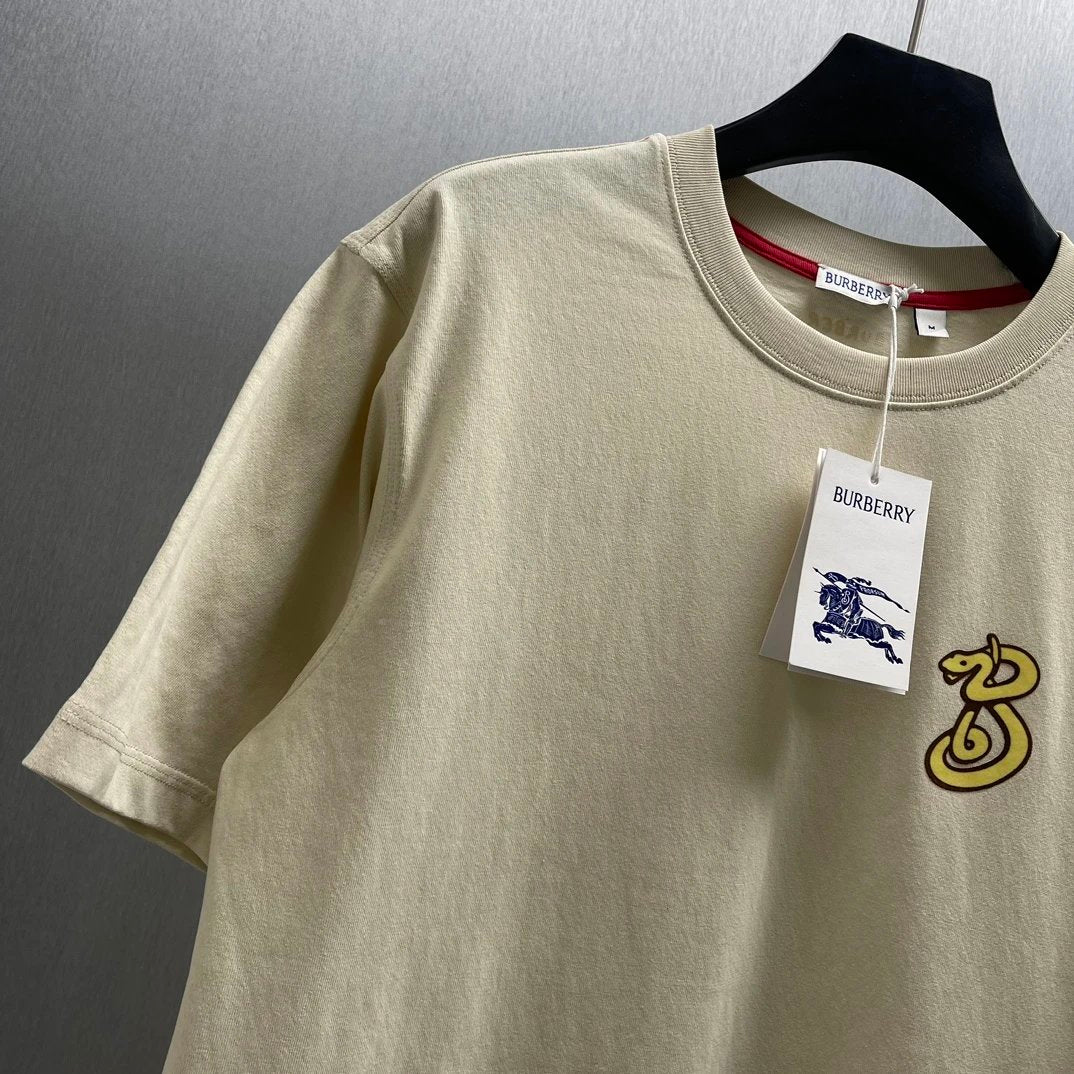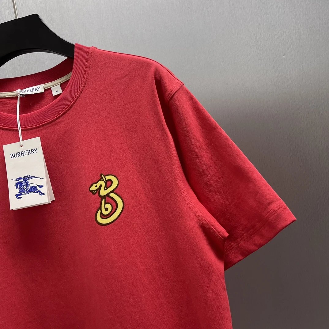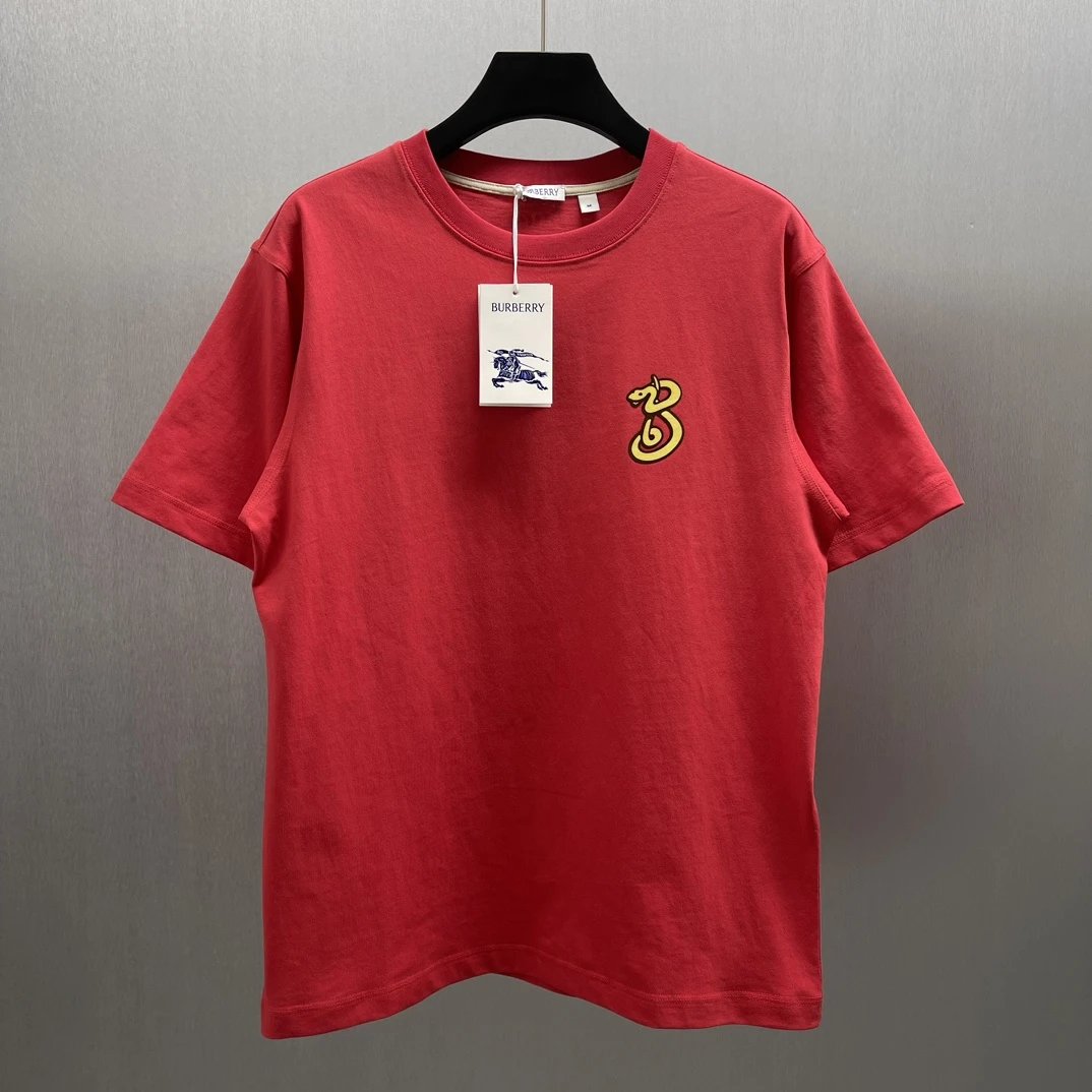 Burberry T-shirt New Year Celebration Snake-Shaped Letters B Patterned Crew Neck Short Sleeve25ss New Pure Cotton Unisex Style T T-shirt OS Loose Fit Base Shirt Short Sleeve Top T-Shirt