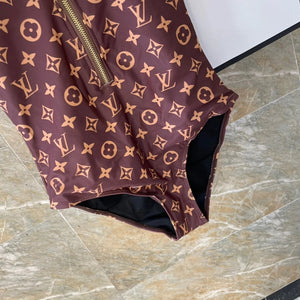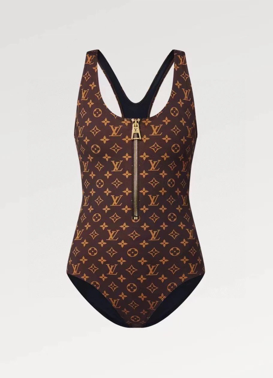 Louis Vuitton LV Swimsuit Old Flower Zipper One-Piece Bikini Swimsuit Sexy Small Chest Gathered Beach Pool Backless White Women's Swimwear Vacation Hot Spring