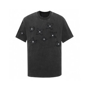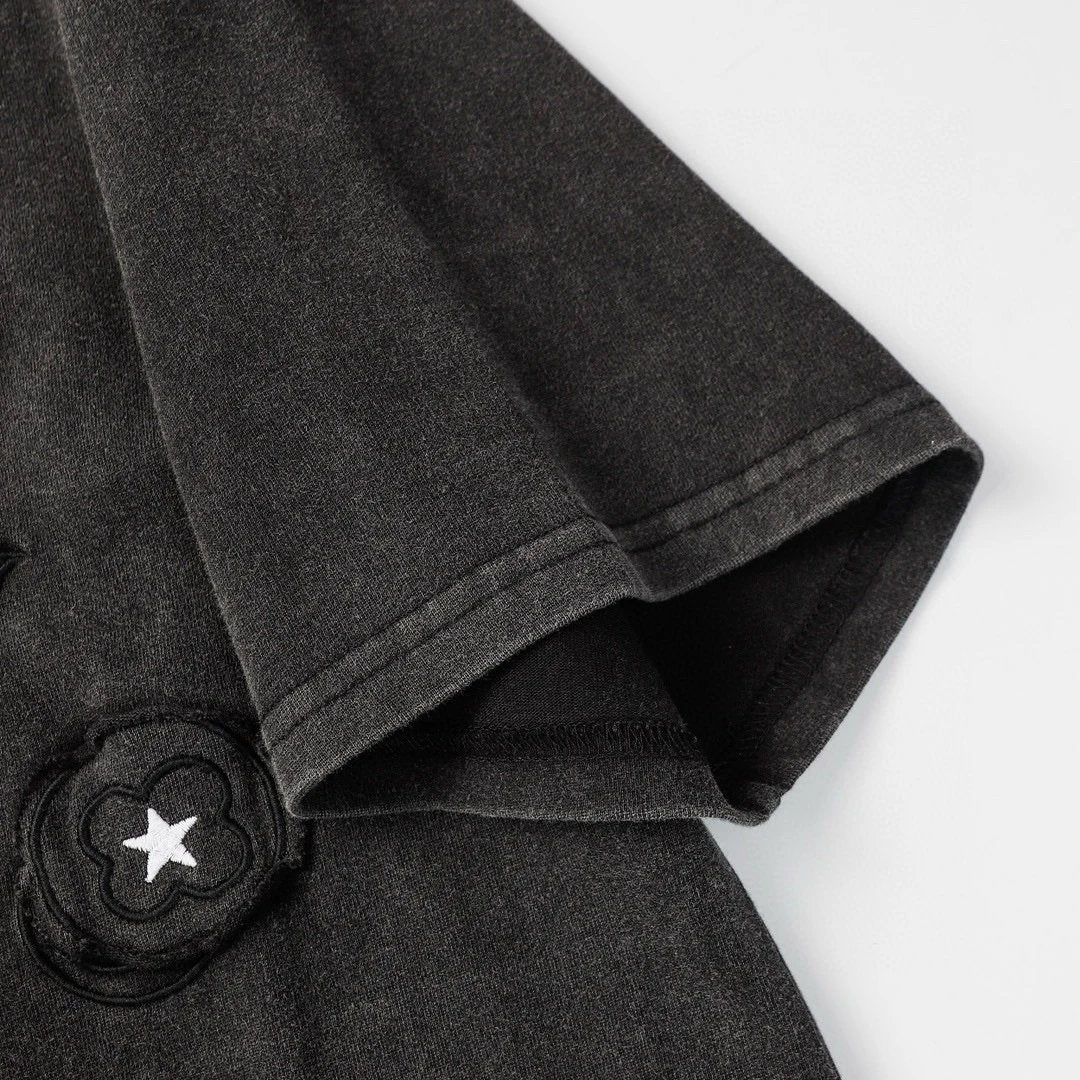 Appliqué Salted Craft Presentation Exclusive Custom Woven and Dyed High-Gram Density Compact Combed Cotton Fabric Soft and Comfortable Os Drop Shoulder Loose Fit Spring/Summer Latest Brick Cabinet Synchronization Unisex