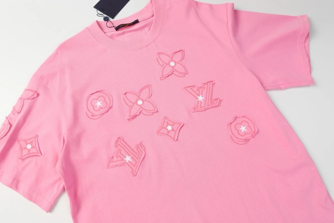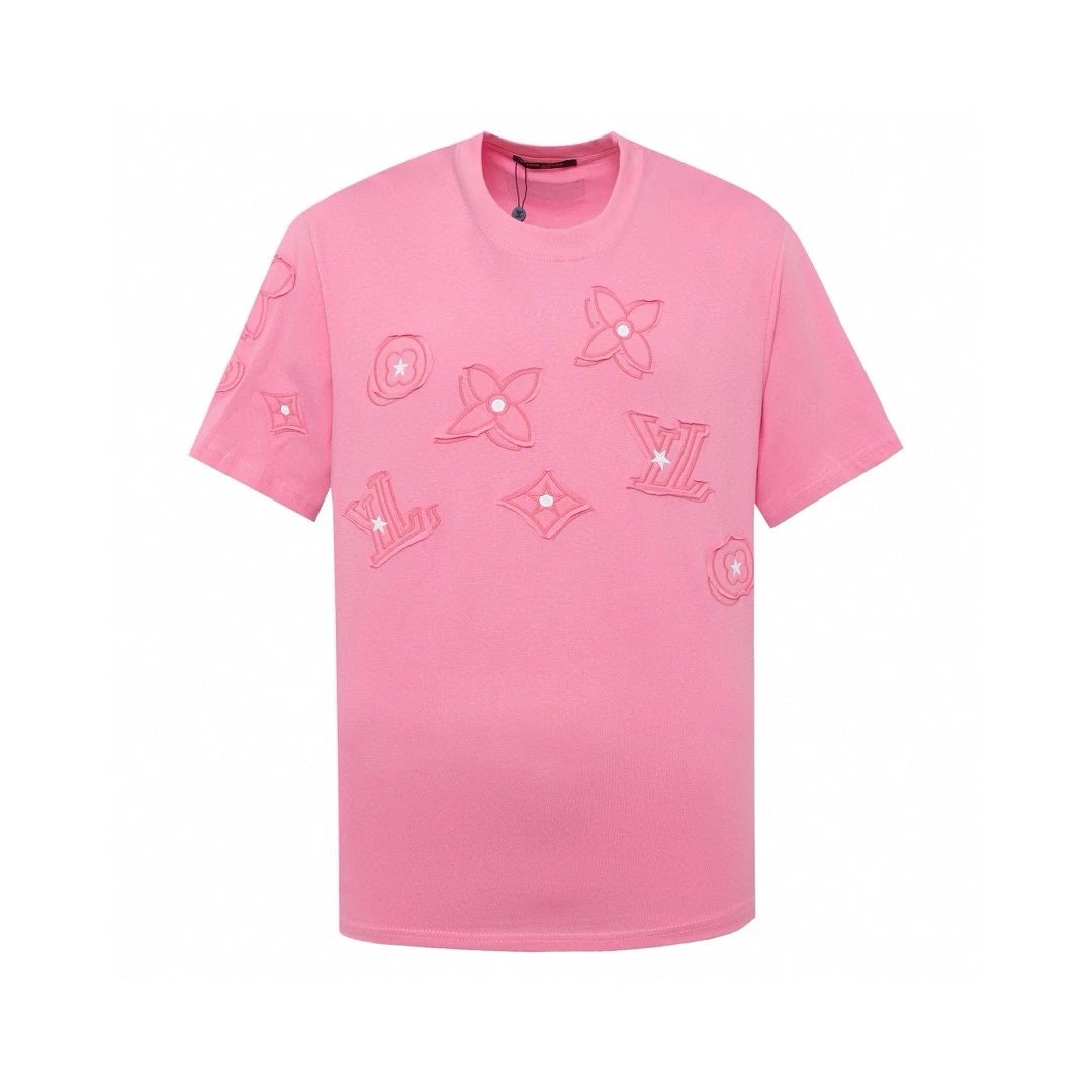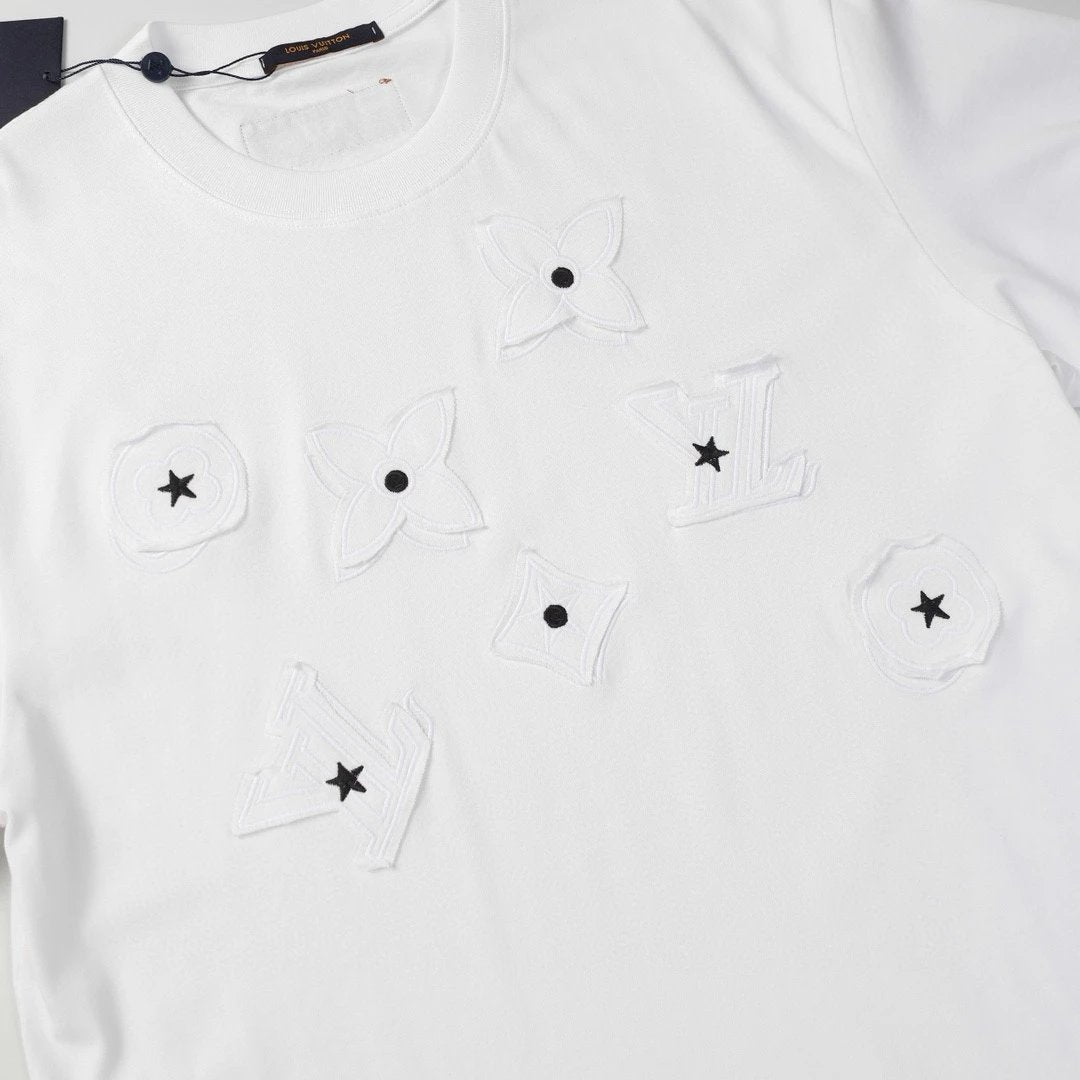 Louis Vuitton LV T-shirt Patch logo round Neck Short Sleeve25ss New Pure Cotton Unisex Style T T-shirt OS Loose Fit Base Shirt Short Sleeve T-Shirt Top