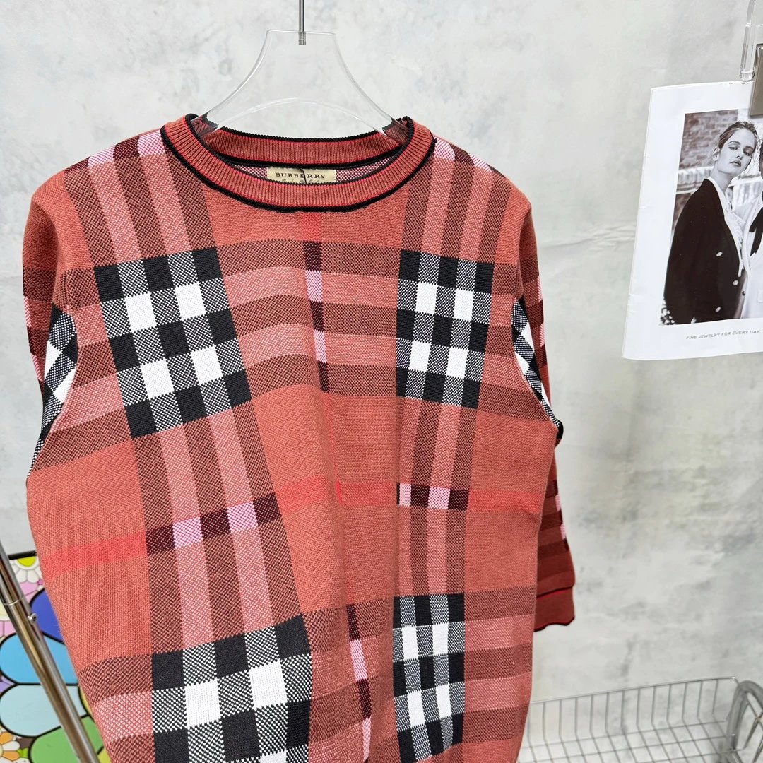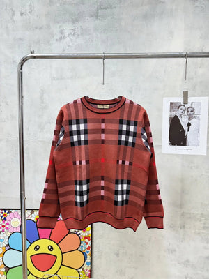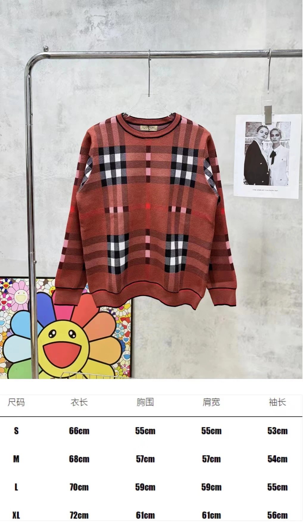 Burberry Sweater Patchwork Classic Plaid Round Neck Knit Sweater700Kegao Heavyweight Pullover Sweater Casual Loose Versatile Cashmere Sweater os Unisex Style24ss Autumn and Winter New Products