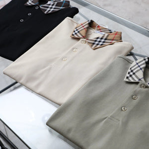 Burberry T-shirt Plaid Collar Pattern logo Embroidery POLO Shirt Lapel Short Sleeve25ss New Unisex Style OS Loose T Summer Half Sleeve Business Shirt Plus Size T-Shirt
