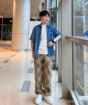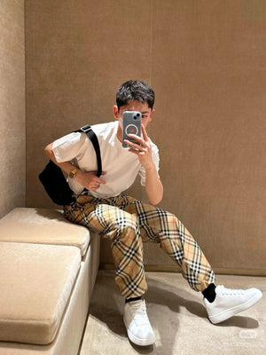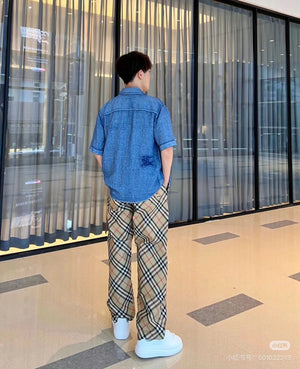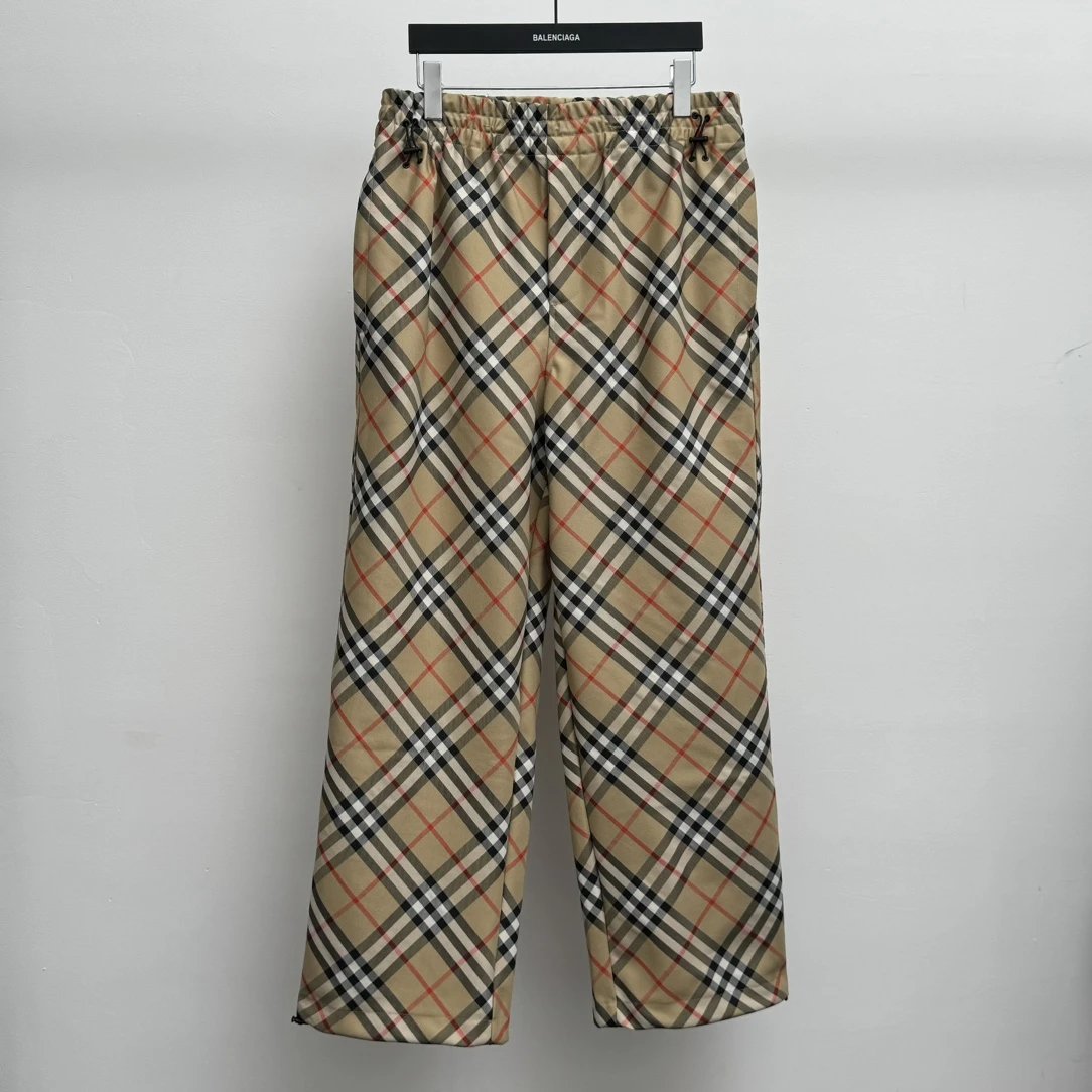 Burberry Sweatpants Plaid Twill Trousers Casual Pants Wide-leg Pants Straight-leg Pants Unisex Long Pants24ss Autumn and Winter New Products