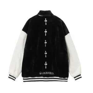 Top Version CH Crocs Heart Rabbit Mink Embroidery Sanskrit Cross Jacket Coat Unisex Baseball Jacket Winter Warm