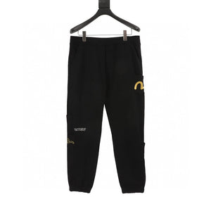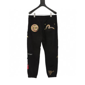Evisu Sweatpants Small Seagull Brocade Patch Sweatpants for Men and Women