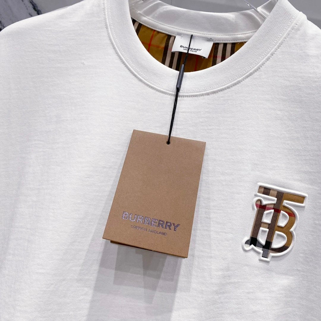 Burberry T-shirt TB Letters LOGO Patch Embossed Small Logo Design Round Neck Short Sleeve25ss New Pure Cotton Unisex Style T T-shirt OS Loose Fit Base Shirt Casual Short Sleeve Top T-Shirt