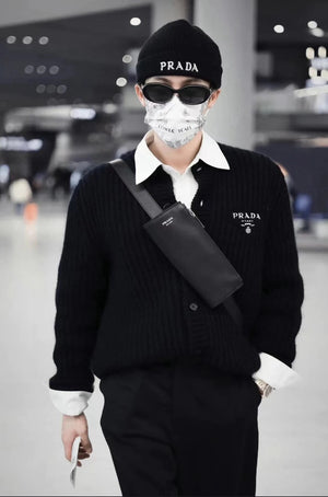 PRADA Prada Thick Knit Wool Cardigan P Parent Sleeve Thickened Lazy Style Unisex Loose Knit Top Jacket Versatile Casual Wear