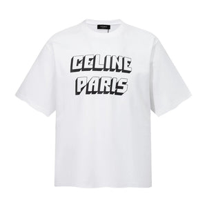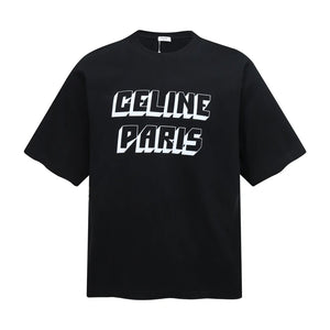 Top Version Celine Chest 3D Logo Print Crew Neck Short Sleeve 25SS New Pure Cotton Unisex T-Shirt OS Loose Fit Base Shirt Half Sleeve Top Tee