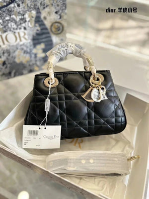 Dior Women's Bag Top version 2023New LadyD1or95.22Handbag Rattan Plaid Trapezoidal Diana Full Leather lady Portable Women's Bag Shoulder Crossbody Portable Diana Bag Commuter Bag Limited Edition
