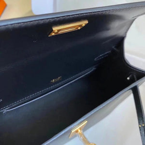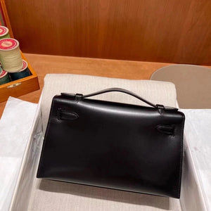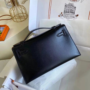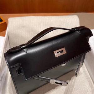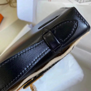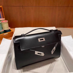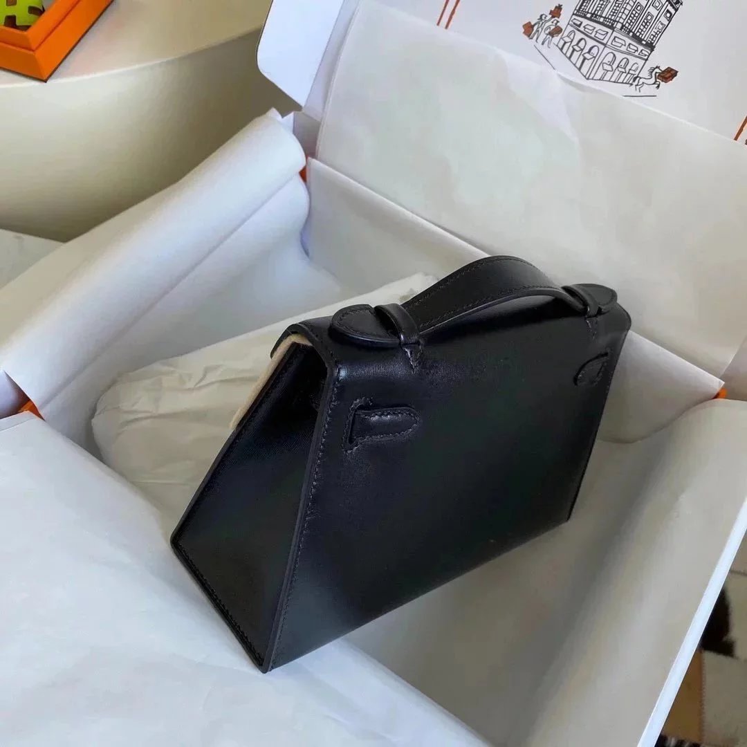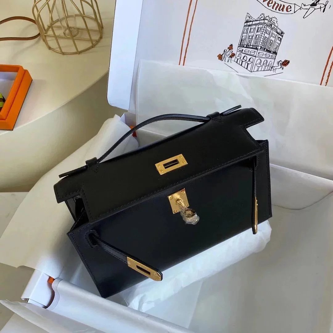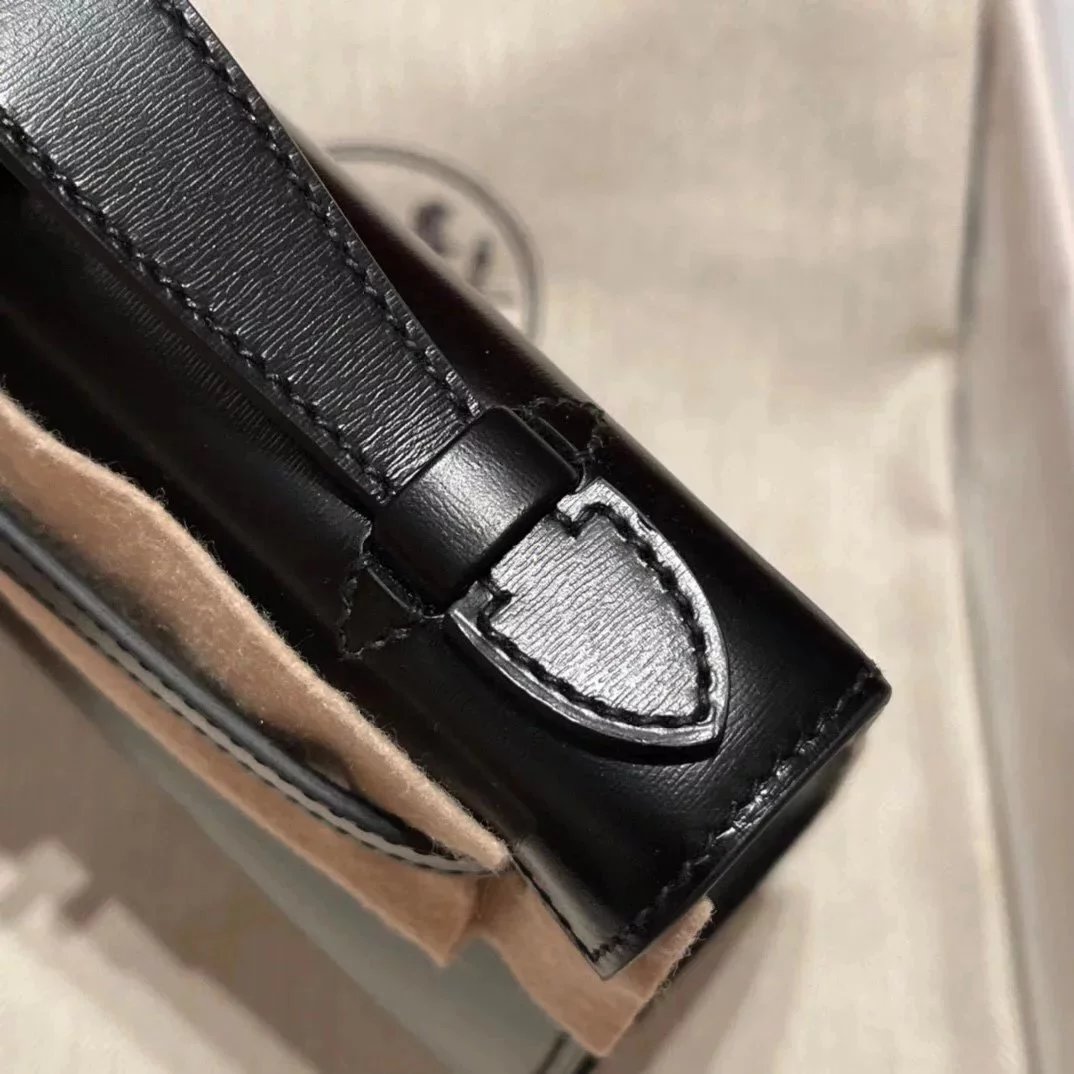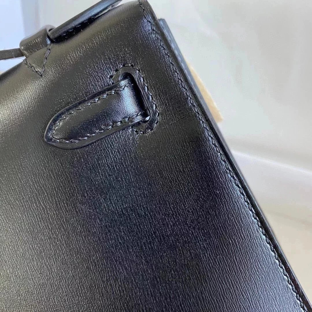 In Stock: Mini Kelly22 Black Gold Box Leather Referred to as the First Generation of Handmade Version Full Description before Purchase