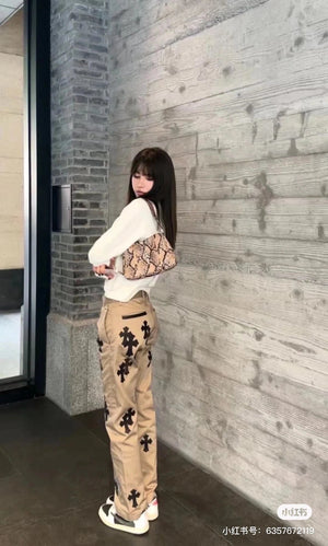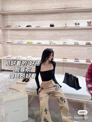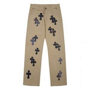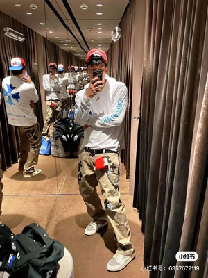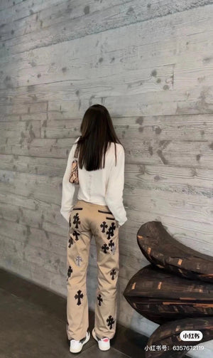 Chrome Hearts Jeans Top Version Counter Same Style Heavy Straight Stretch-Free Loose Blue Jeans Baita Casual Trousers for Men