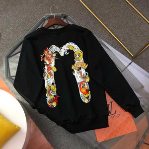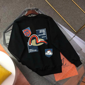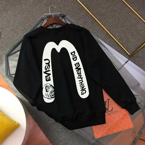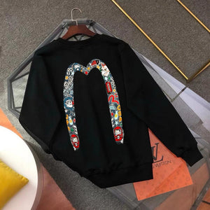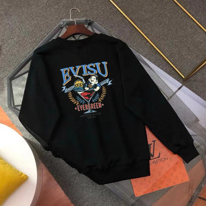 Evisu Hoodie Top Version Counter Same Style Loose Pullover Top Men's Cotton Sports Casual Fashion Brand Women's round Neck Sweater