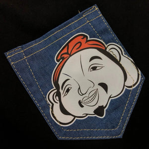 The Small Seagull Pocket Pattern Is Printed on the Back, and the Classic Buddha Head Is Visible on the Front. It Is More Fashionable with a Wide Sweater. Fit Style Small Seagull Pocket Pattern Buddha Head Printing