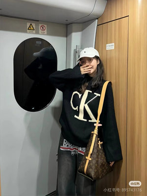 **Version CK Counter Same Style Men's and Women's Autumn and Winter New round Neck Cashmere Sweater Sweater Sweater Fashion Shopping Instructions