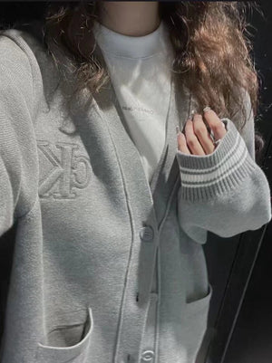**Version CK Counter Same Style New Wool Cardigan Sweater Loose Casual Sweater Coat Fashion Shopping Instructions