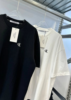 [Ck Calvin Klein Heavy Industry Embossed Logo Silicone Letters Solid Color Short Sleeved T-shirt]]