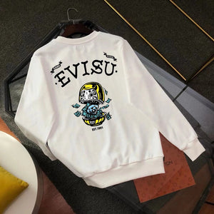 Evisu Hoodie Top Version Counter Same Style Sweatershirt Men's Clothing Autumn and Winter New Classic LOGO Embroidered Crew Neck Long Sleeve Fashion