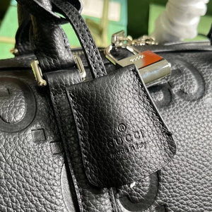 With a Full Set of Original Green Gift Bag Super Double G Small Travel Bag. As a New Interpretation of Mr. Guccio Gucci's Initials, the Super Double G Pattern Is Presented with Extra Large Size Bright Eyes, Creating an Enduring Brand Logo Charm. This Small Travel Bag Shows Its Charm with a Full Black Super Double G Logo. Black Super Double G Leather, Black Leather Piping, Cotton and Linen Lining, with Removable Lock and Key, Removable ID Tag, Key Chain and Lock, Gucci Engraved Metal Foot Protector, Interior: 2 One Zip Pocket, Capacity: 28 Liters, Handle (10cm High) Shoulder Strap Height 50cm, Zipper Closure, Weight: about 2.6 6,000G.