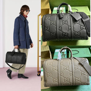 Gucci Tote Bag/Briefcase/Travel Bag Top version 【**Customization】23New Ophidia Brand New Super Double G Series Travel Bag Black Cowhide Embossed Original Leather Business Traveling Luggage Bag Travel Bag45cm Model:725282