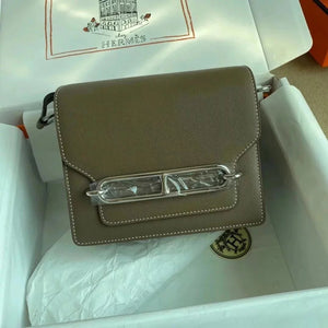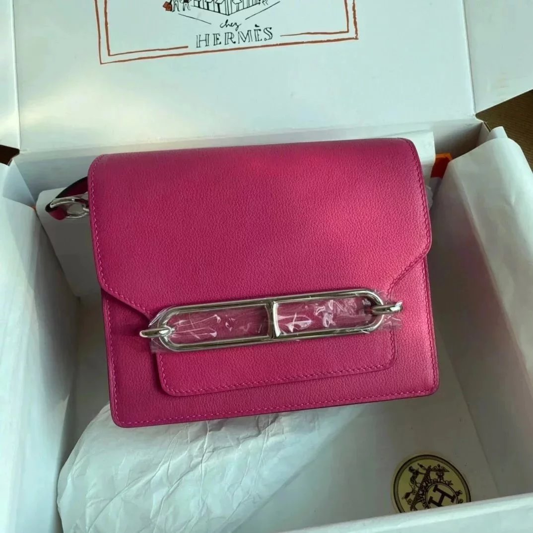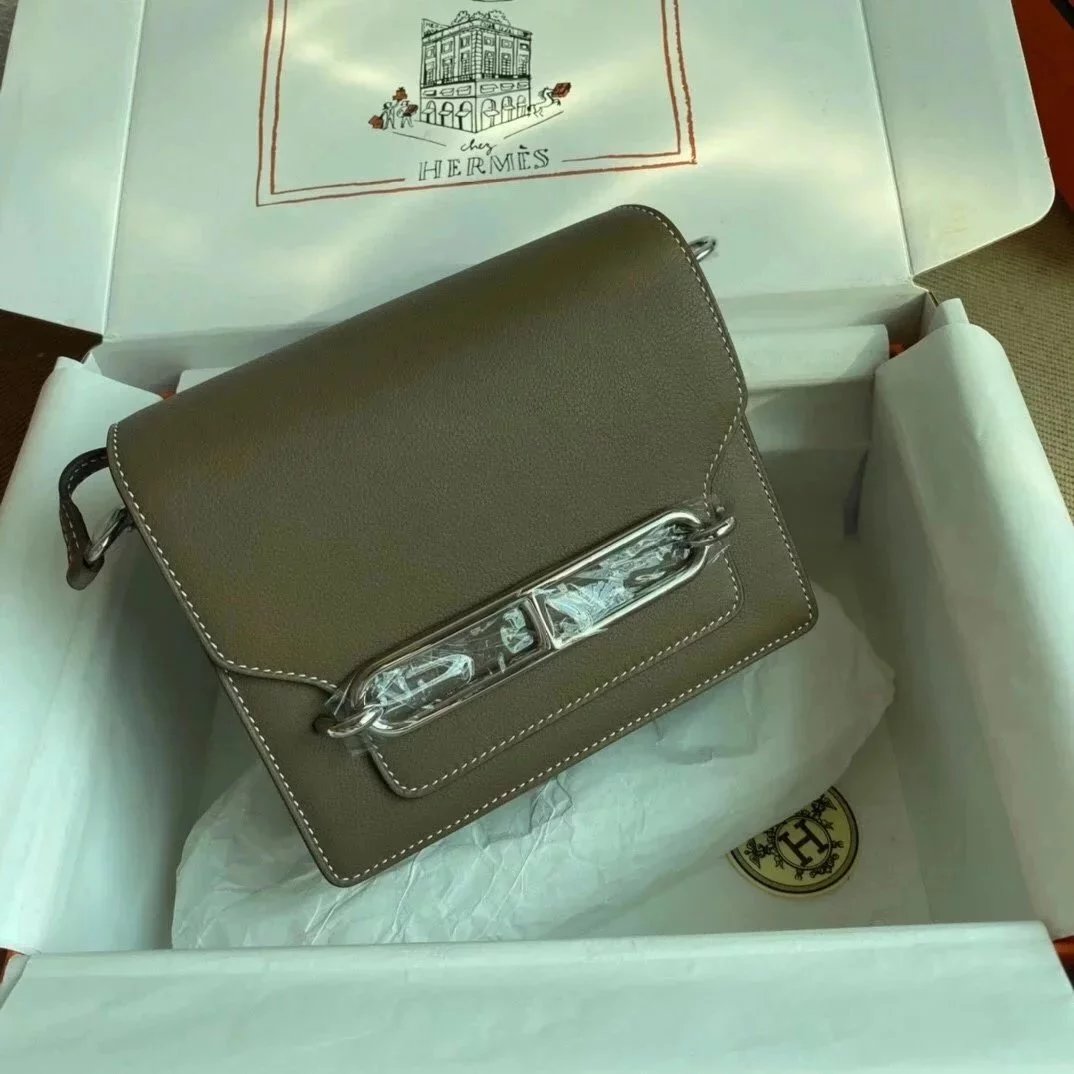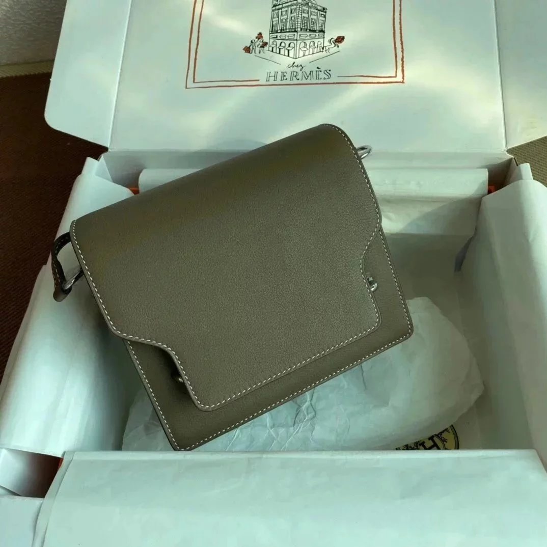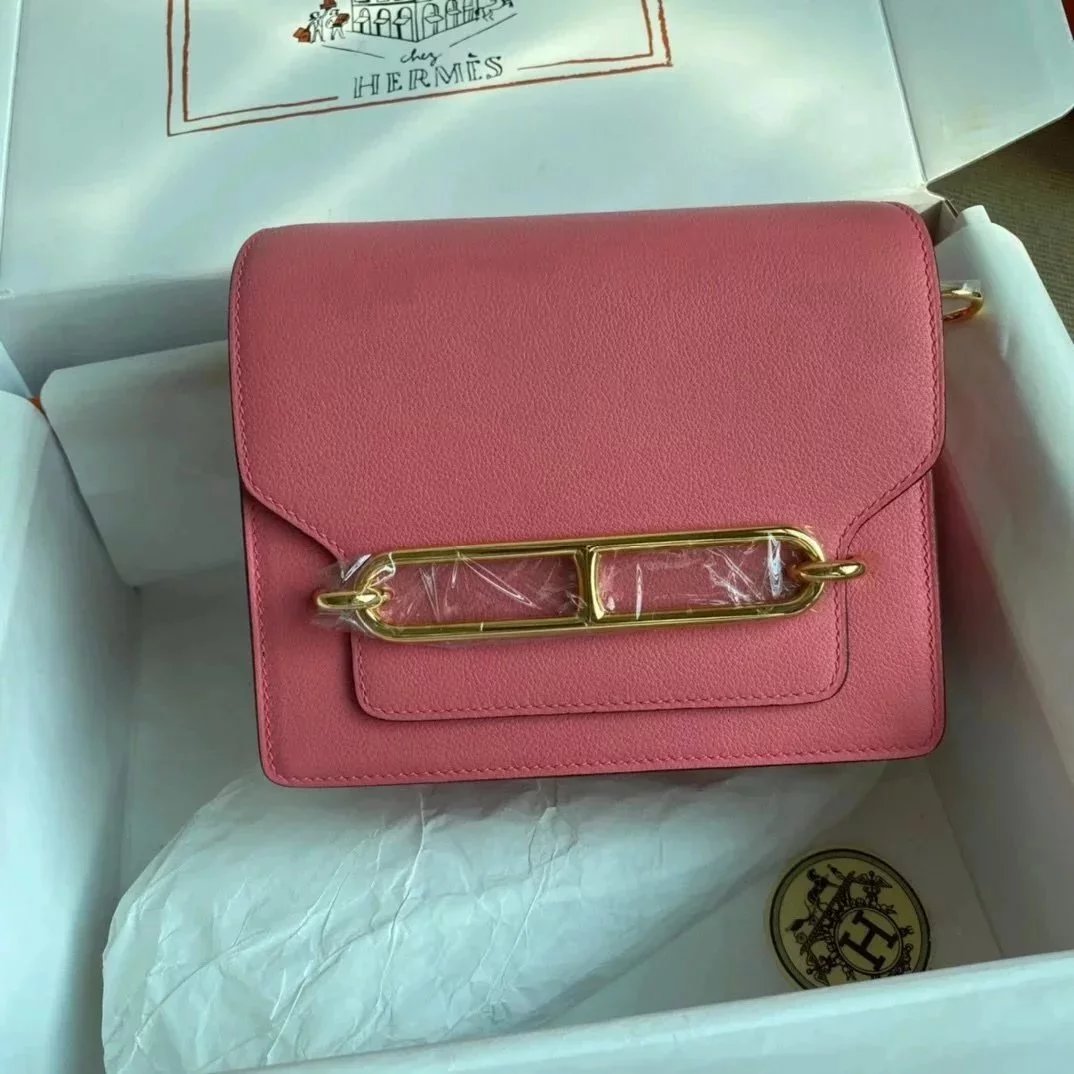 Hermes women's bag Top version Customized Real Shot Small Square Bag Pig Nose Bags Roulis19CMevercolor Leather Pig-Shaped Bun Gold Buckle Silver Buckle Flap Shoulder Messenger Bag Yang Mi Same Style Women Bag