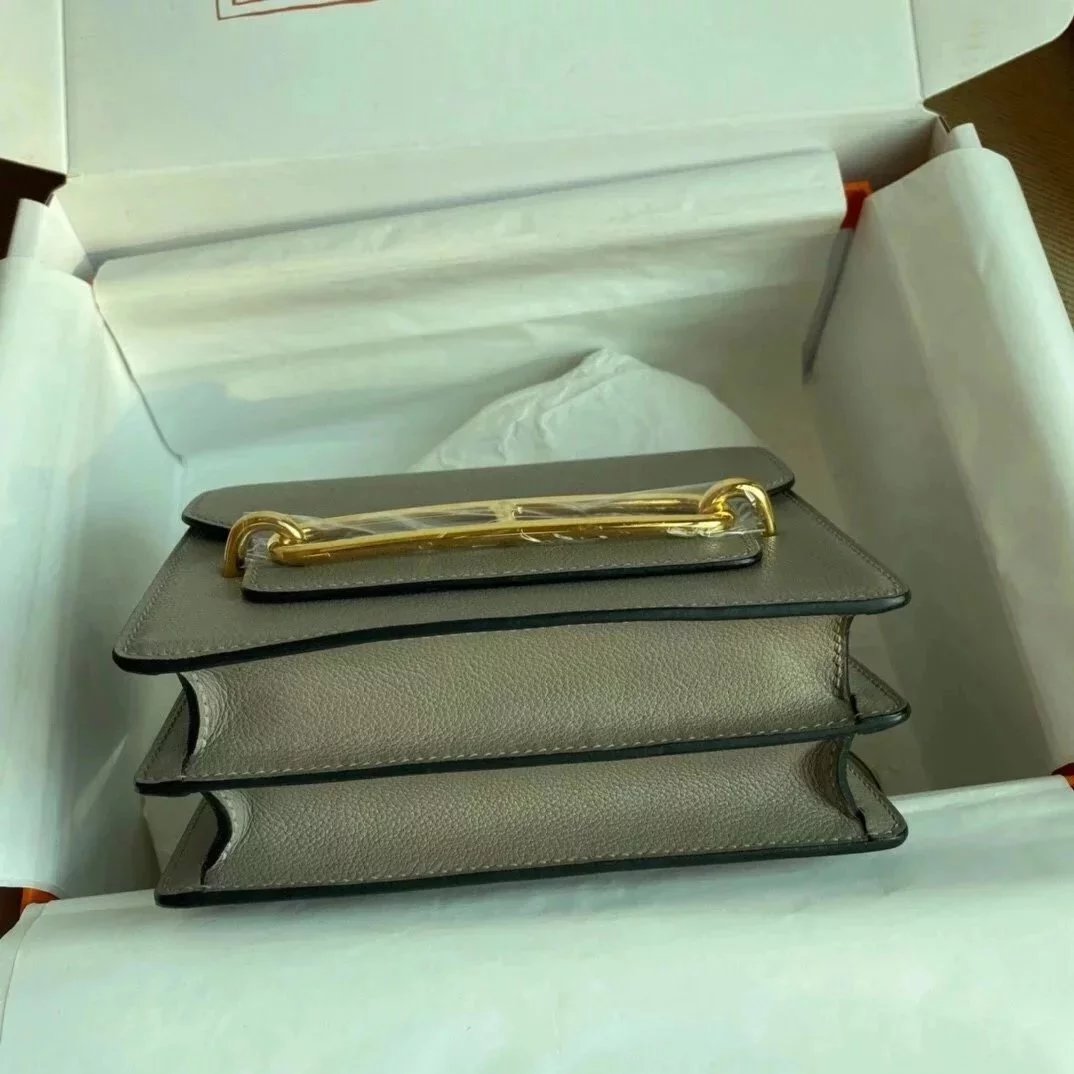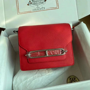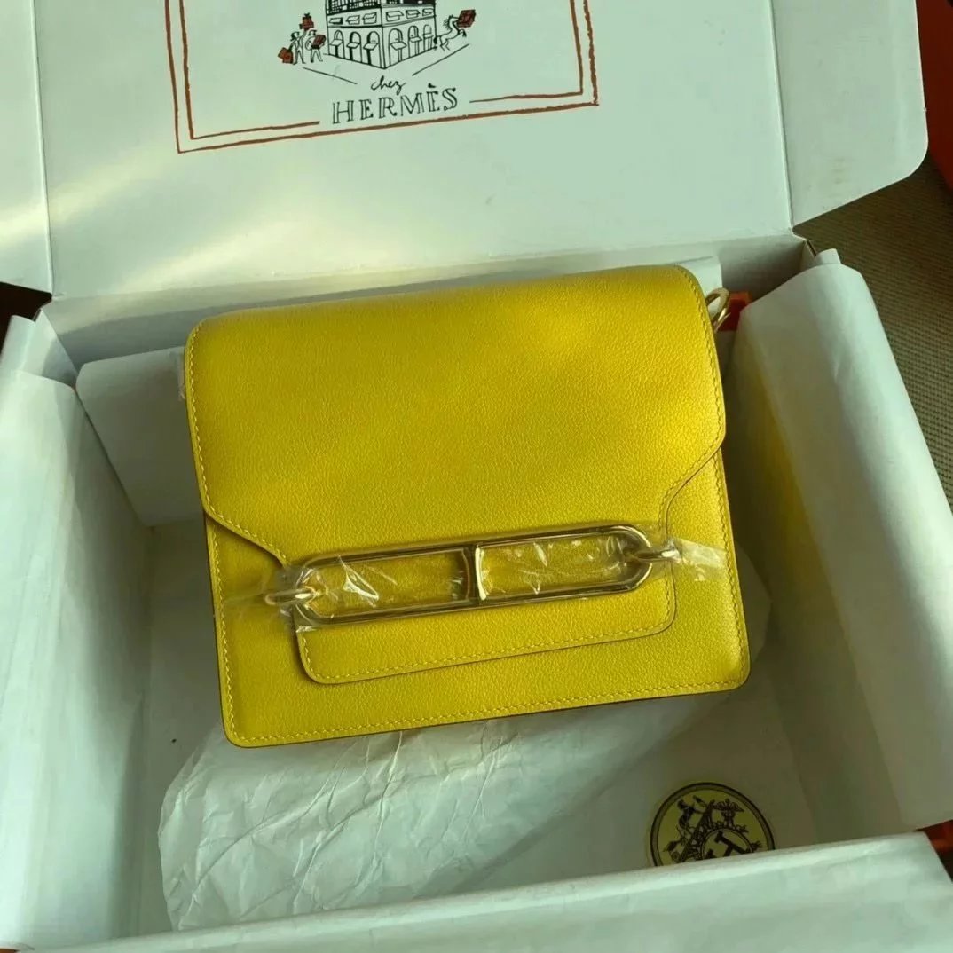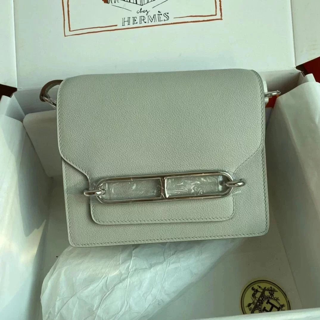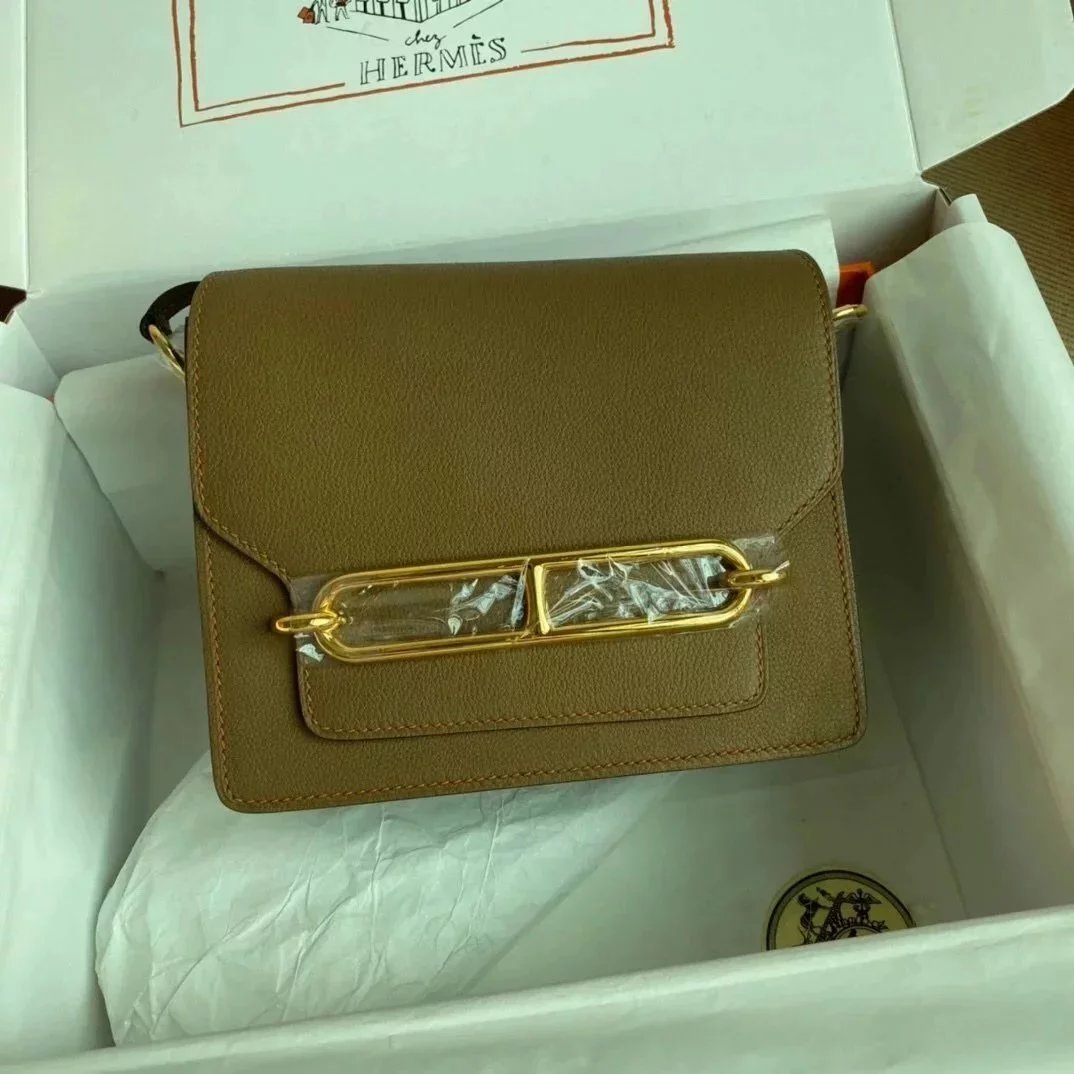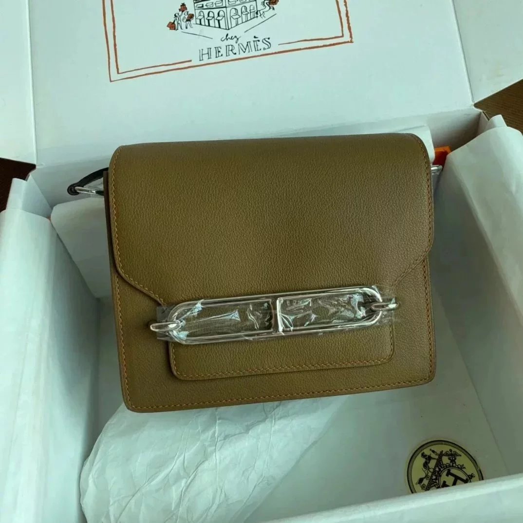 Hermes women's bag Top version Customized Real Shot Small Square Bag Pig Nose Bags Roulis19CMevercolor Leather Pig-Shaped Bun Gold Buckle Silver Buckle Flap Shoulder Messenger Bag Yang Mi Same Style Women Bag