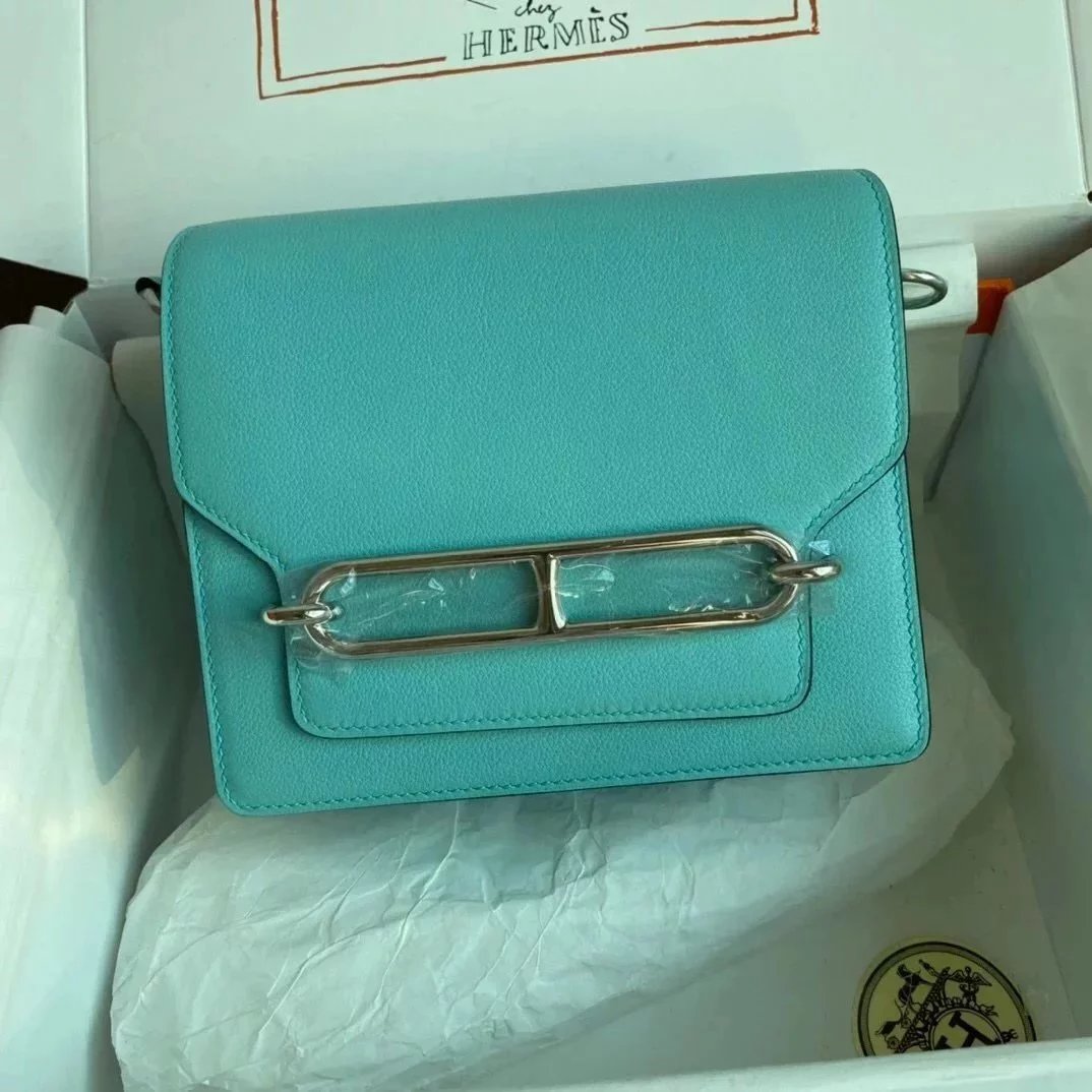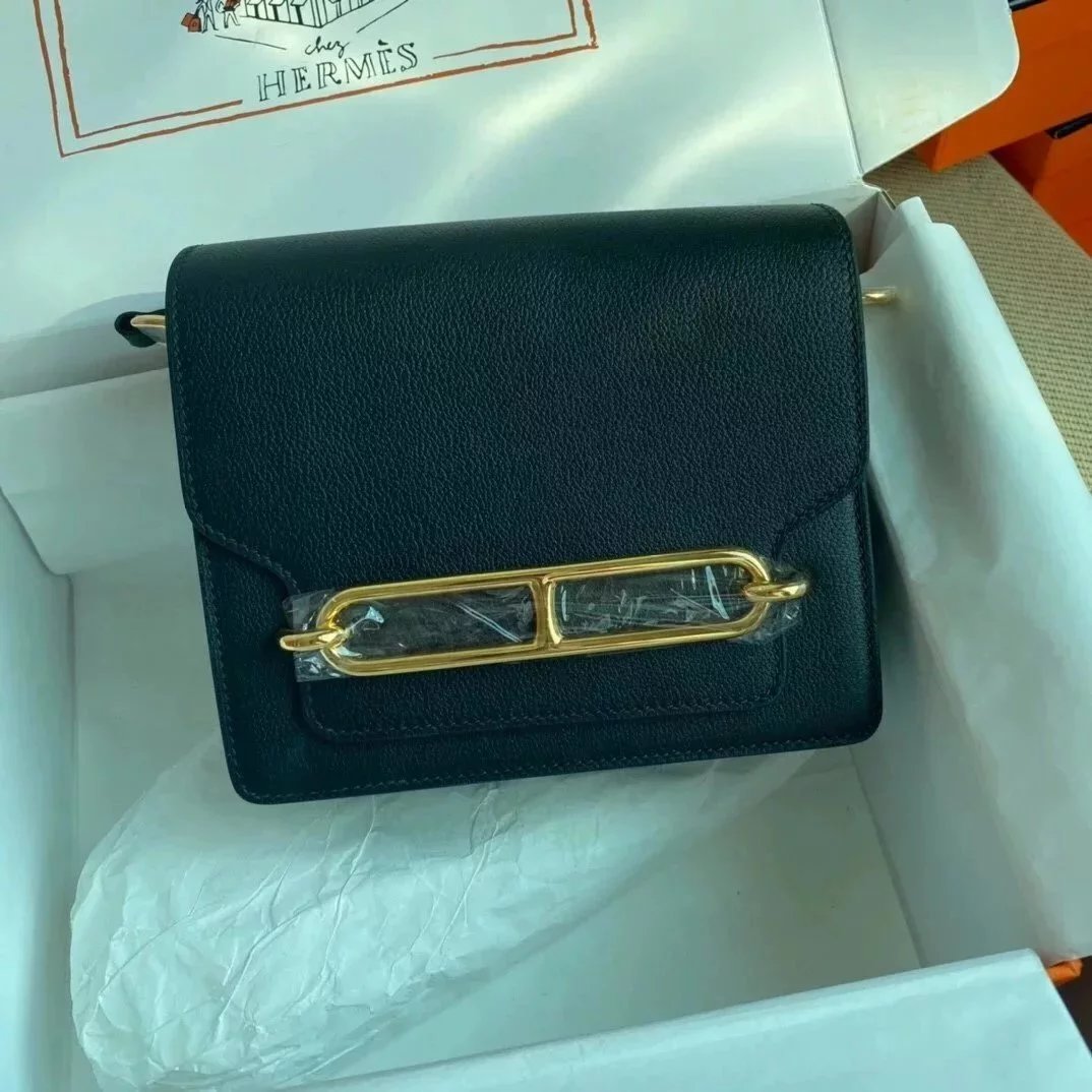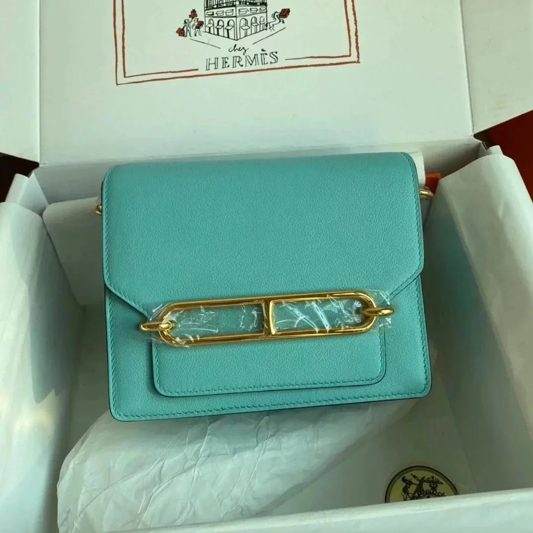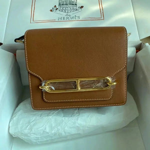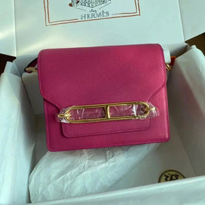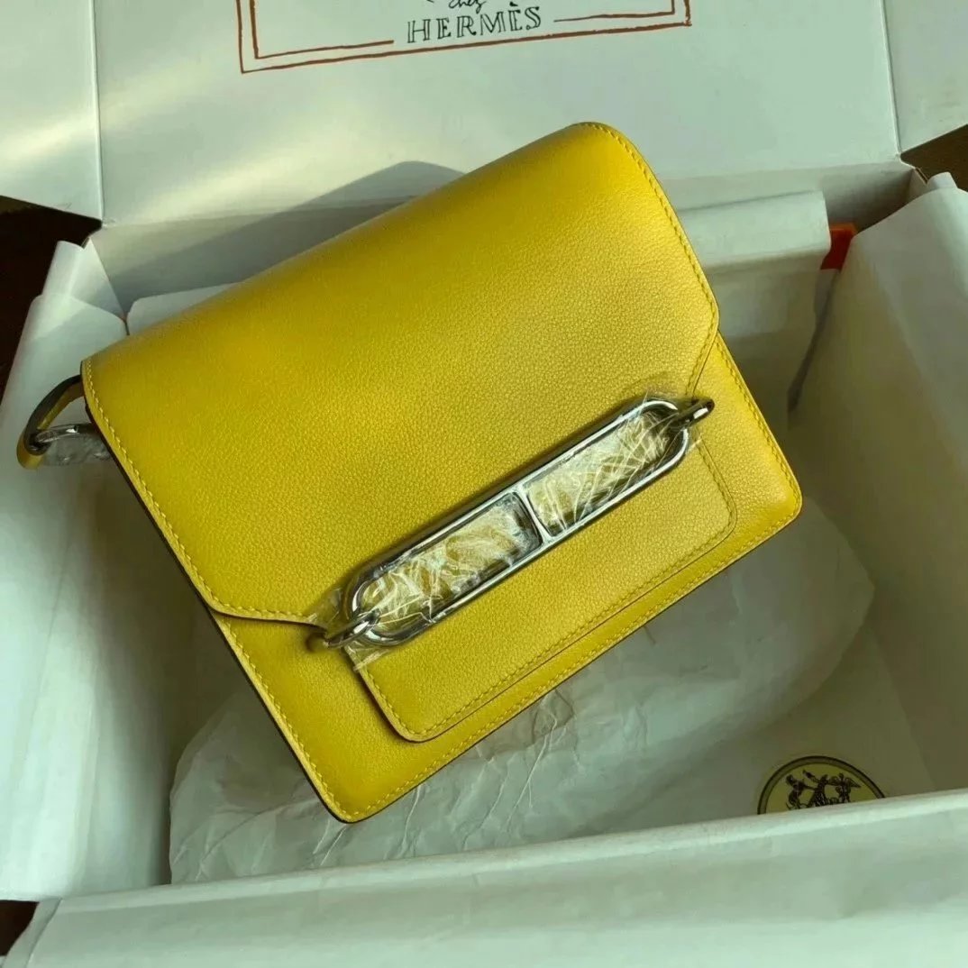 Hermes women's bag Top version Customized Real Shot Small Square Bag Pig Nose Bags Roulis19CMevercolor Leather Pig-Shaped Bun Gold Buckle Silver Buckle Flap Shoulder Messenger Bag Yang Mi Same Style Women Bag