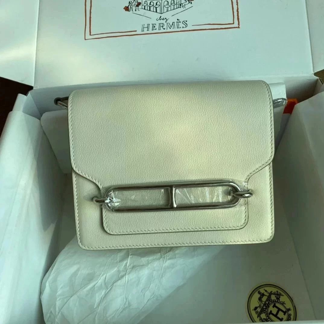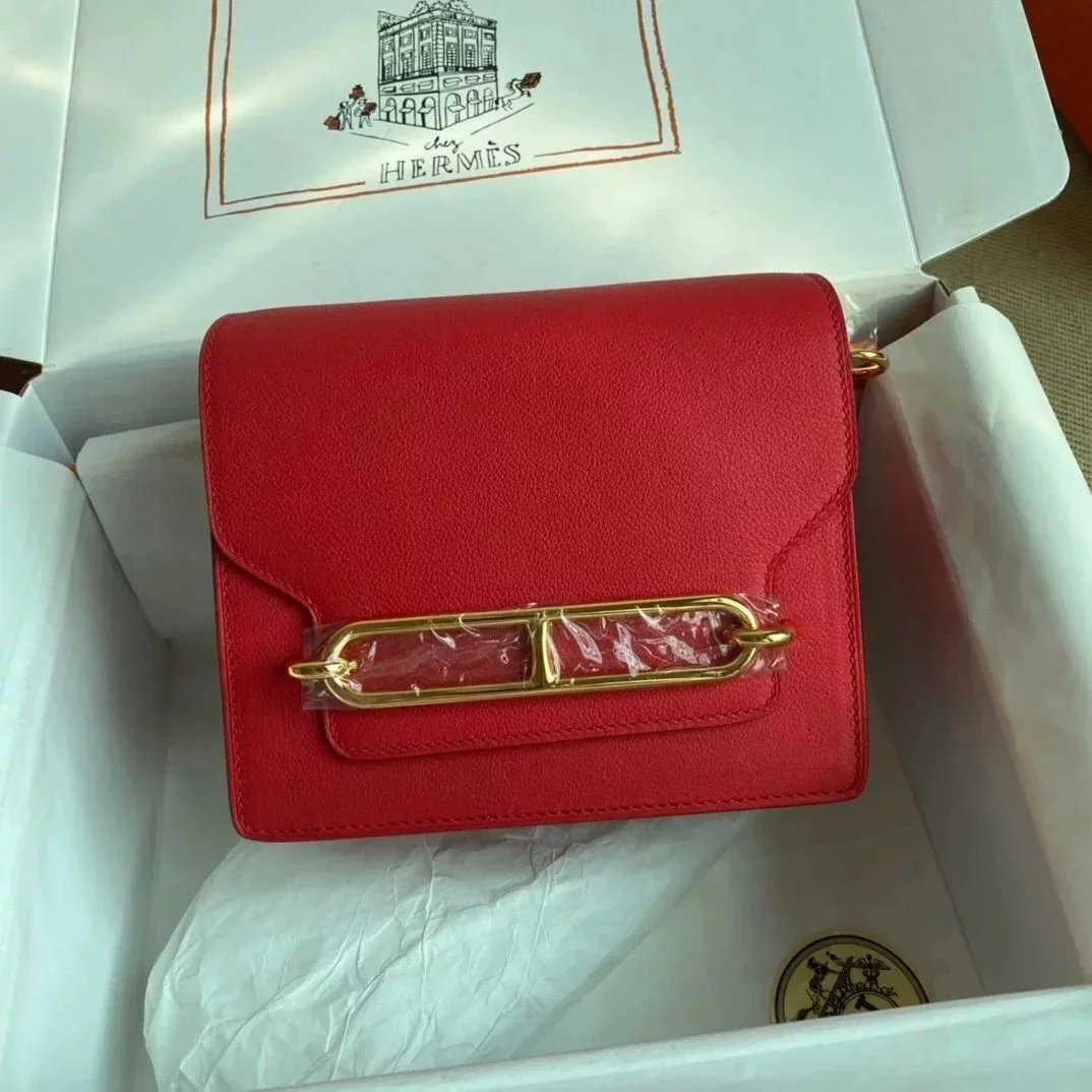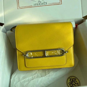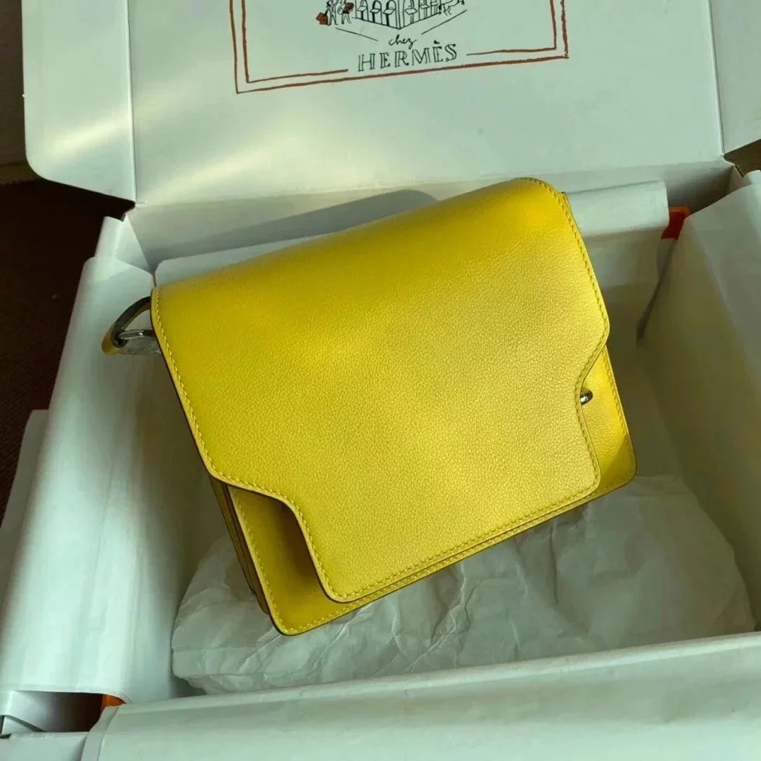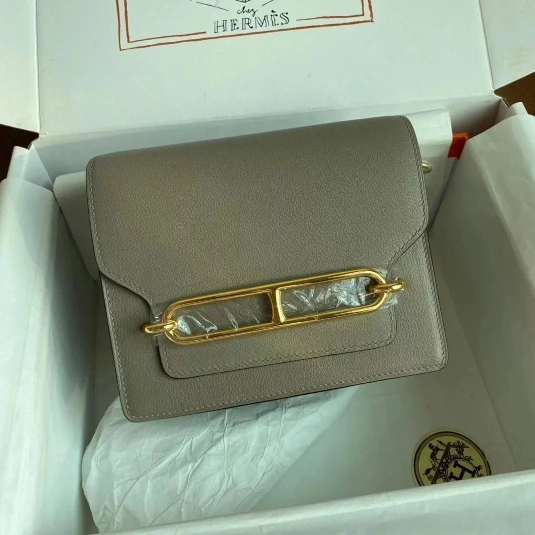 Hermes women's bag Top version Customized Real Shot Small Square Bag Pig Nose Bags Roulis19CMevercolor Leather Pig-Shaped Bun Gold Buckle Silver Buckle Flap Shoulder Messenger Bag Yang Mi Same Style Women Bag
