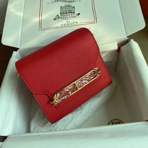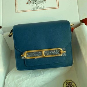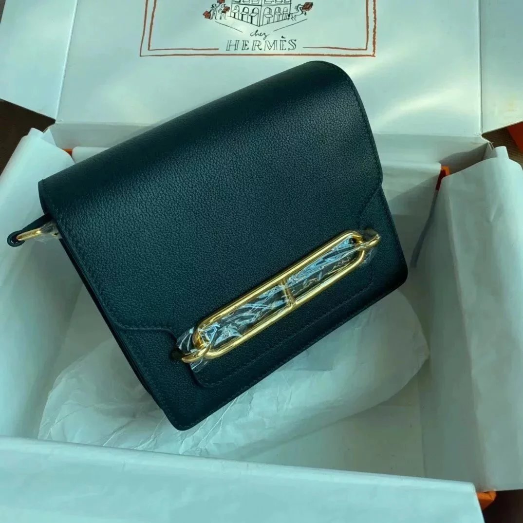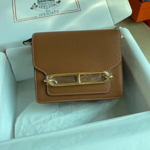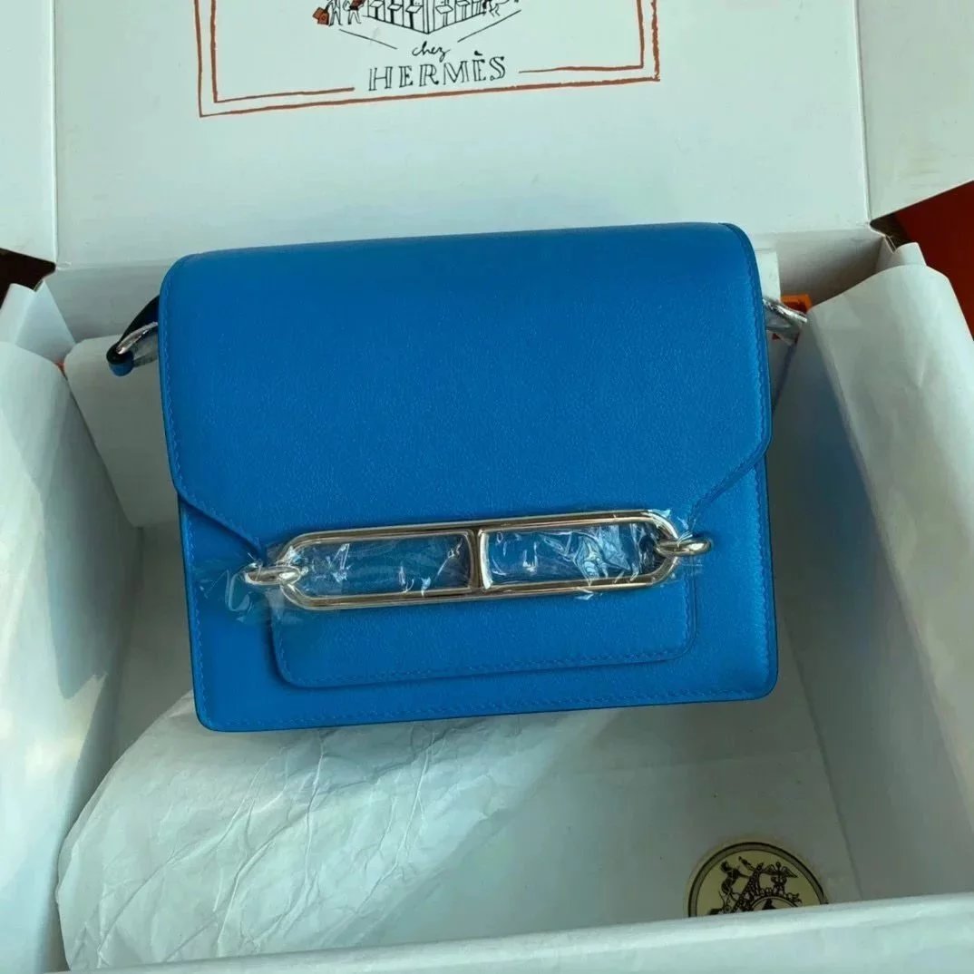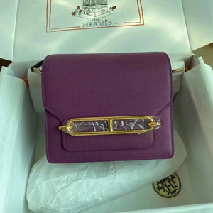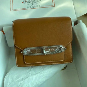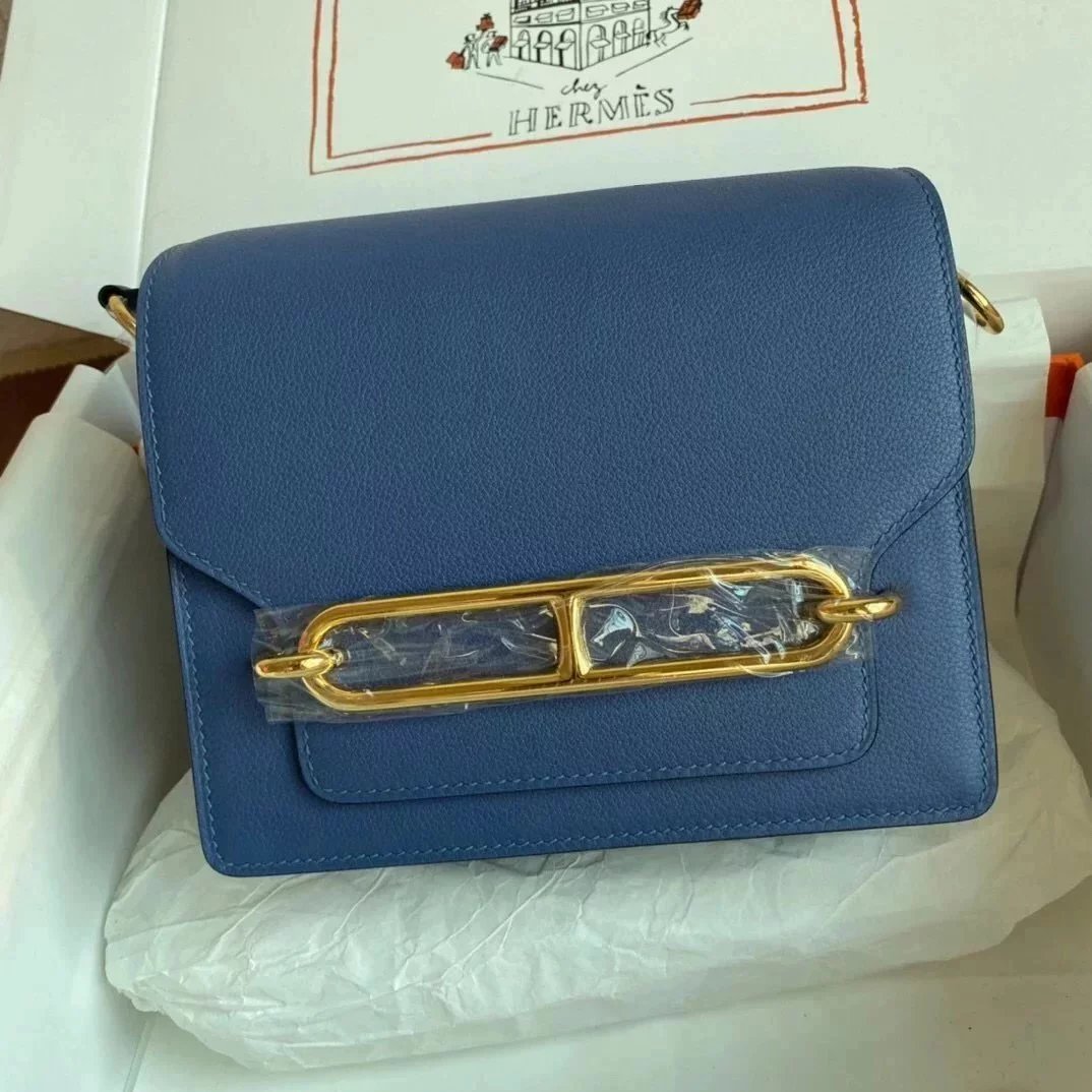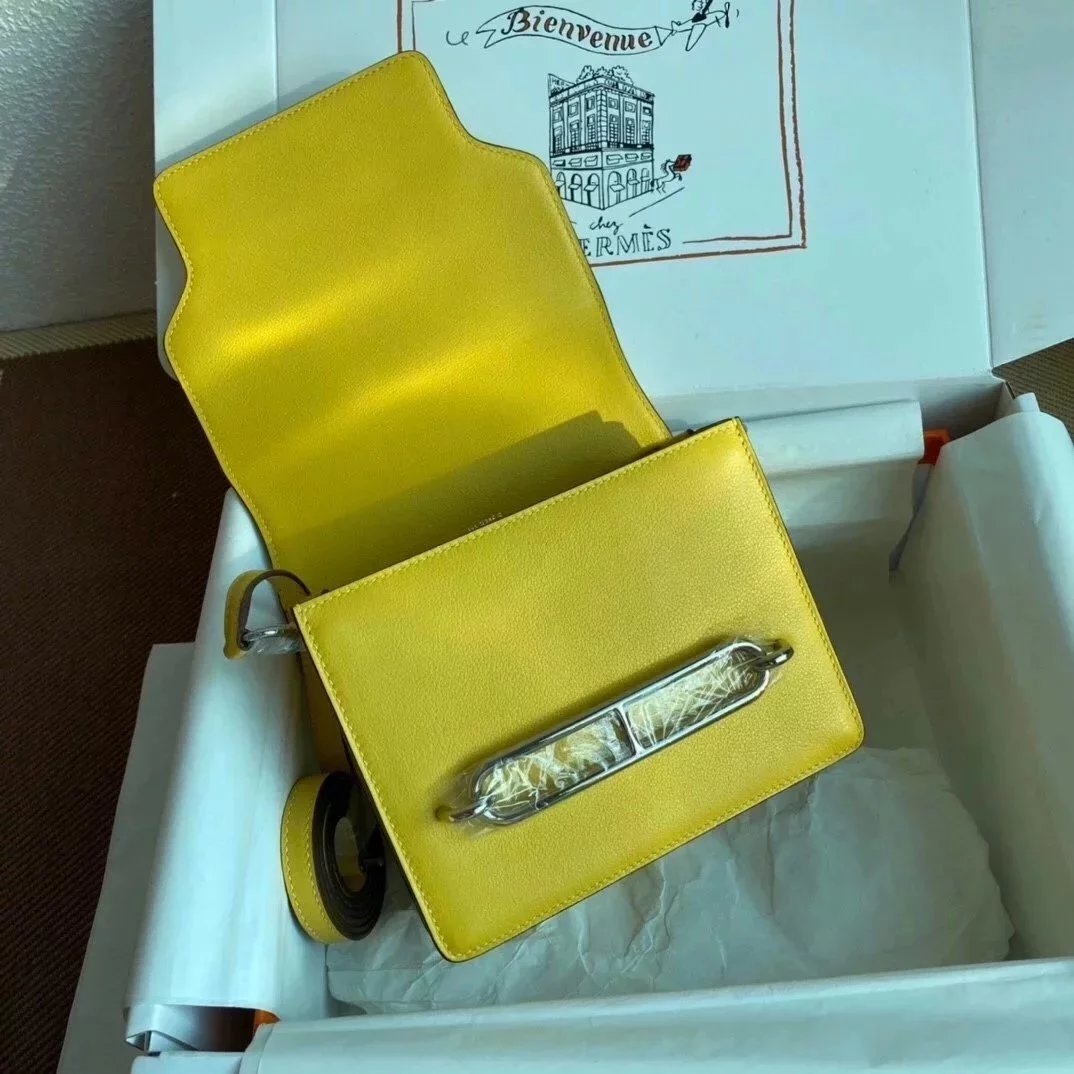 Hermes women's bag Top version Customized Real Shot Small Square Bag Pig Nose Bags Roulis19CMevercolor Leather Pig-Shaped Bun Gold Buckle Silver Buckle Flap Shoulder Messenger Bag Yang Mi Same Style Women Bag