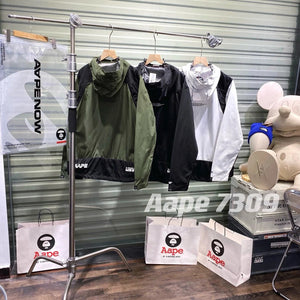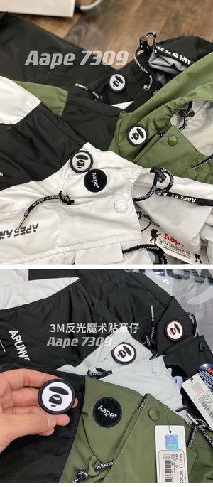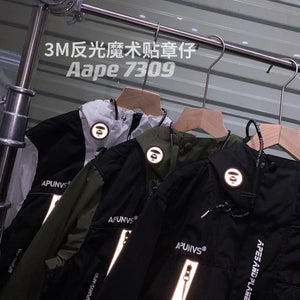 **Version Fashion Brand AAPE Ape Head New Reflective Laser Stitching Anorak Men's and Women's Zipper Jacket Outdoor Jacket Coat