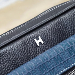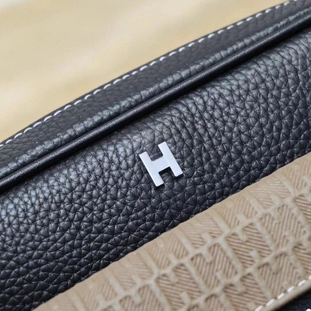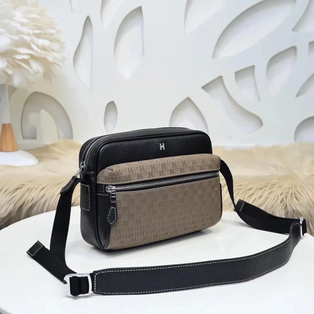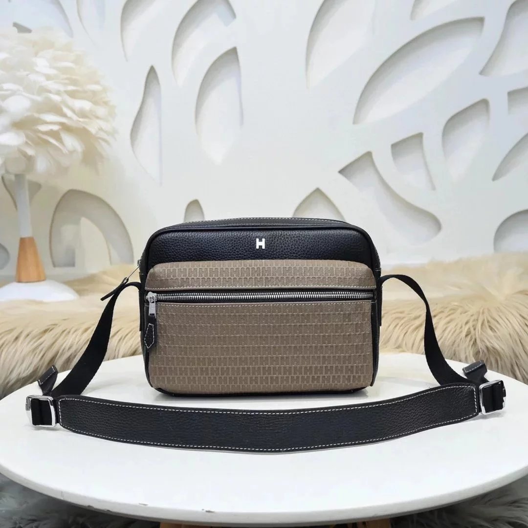 Hermes men's bag Top version Genuine Goods Grade New Classic Men's Fashion Crossbody Bag Men's Casual Shoulder Bag Men's Bag First Layer Cowhide Handbag Khaki Full Leather Black Canvas Handmade Big Bag