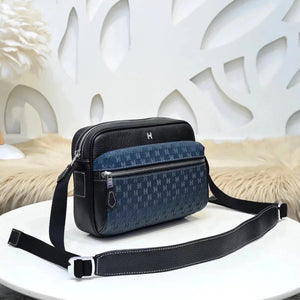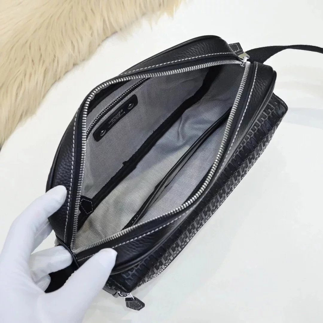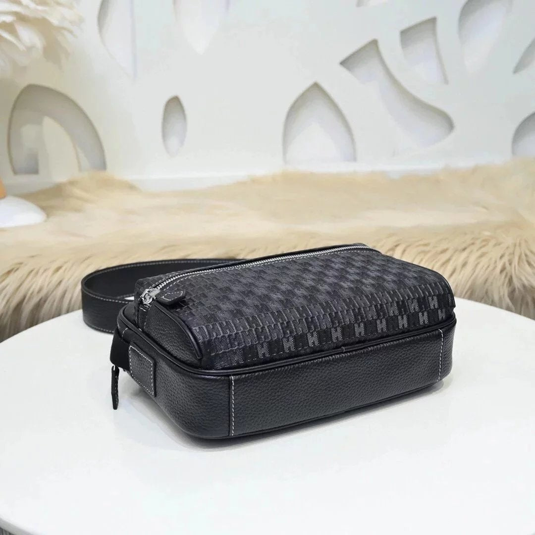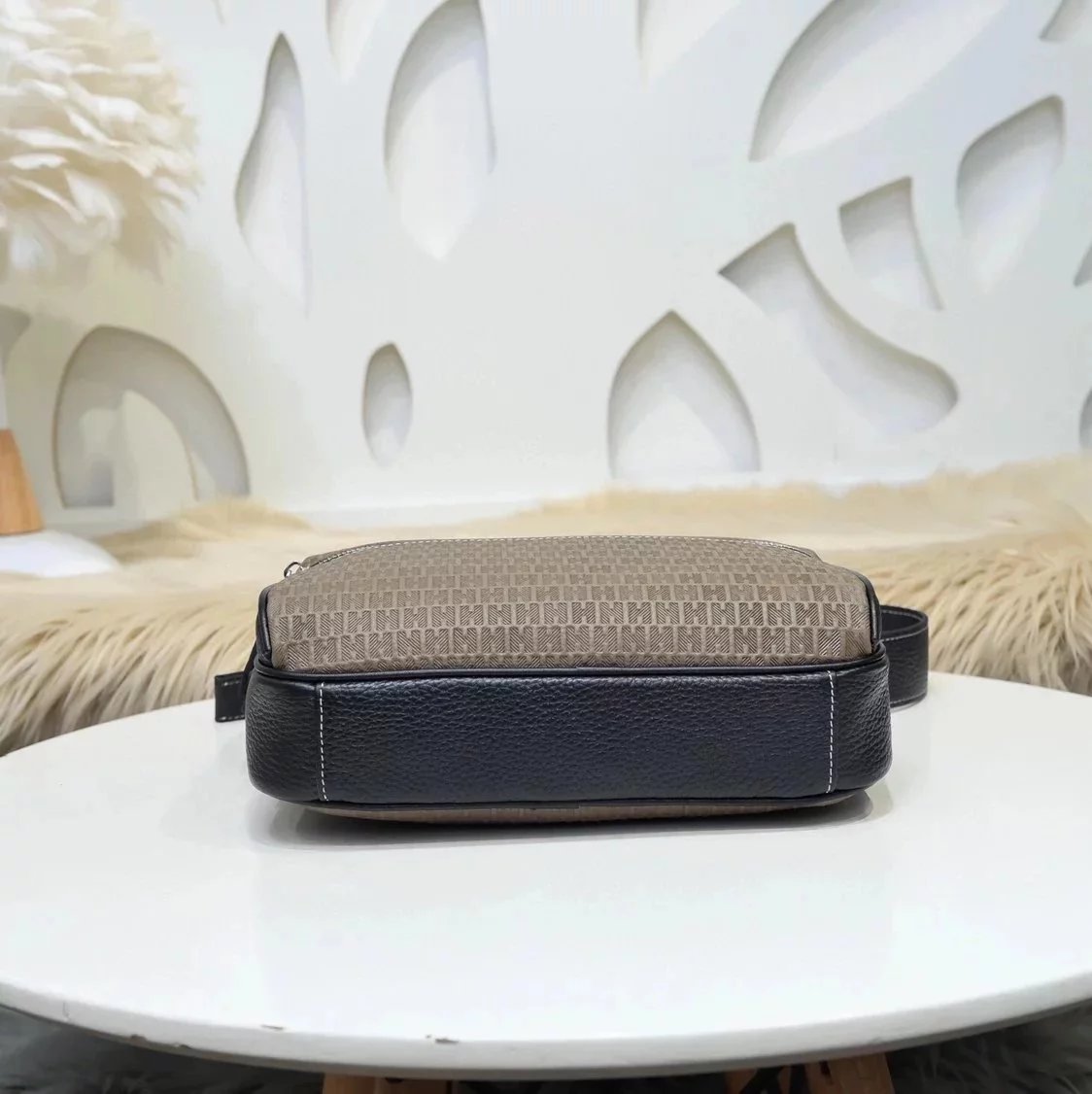 Hermes men's bag Top version Genuine Goods Grade New Classic Men's Fashion Crossbody Bag Men's Casual Shoulder Bag Men's Bag First Layer Cowhide Handbag Khaki Full Leather Black Canvas Handmade Big Bag
